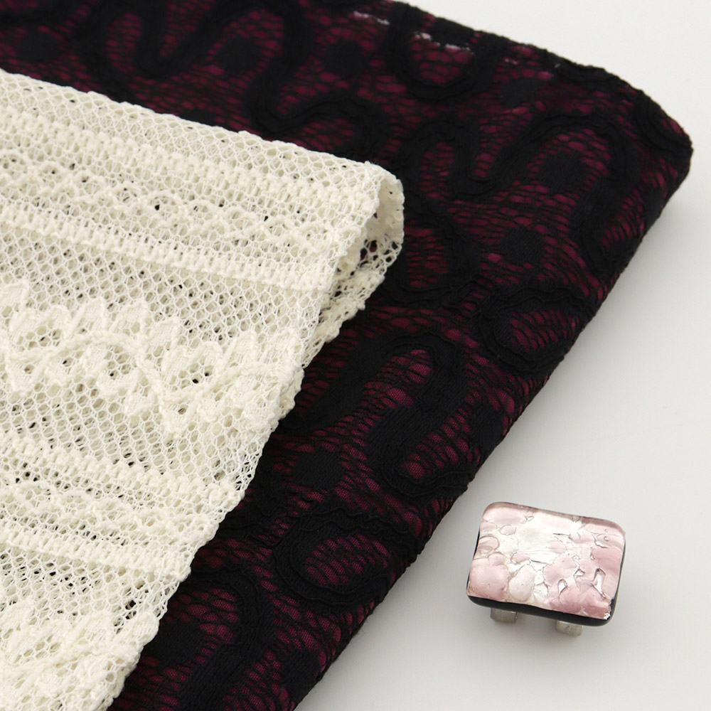 レース生地に異なる生地を貼り合わせるボンディングは、レースの柄行きが一層引き立つ他、ほどよいハリ感で美しいシルエットを実現します。