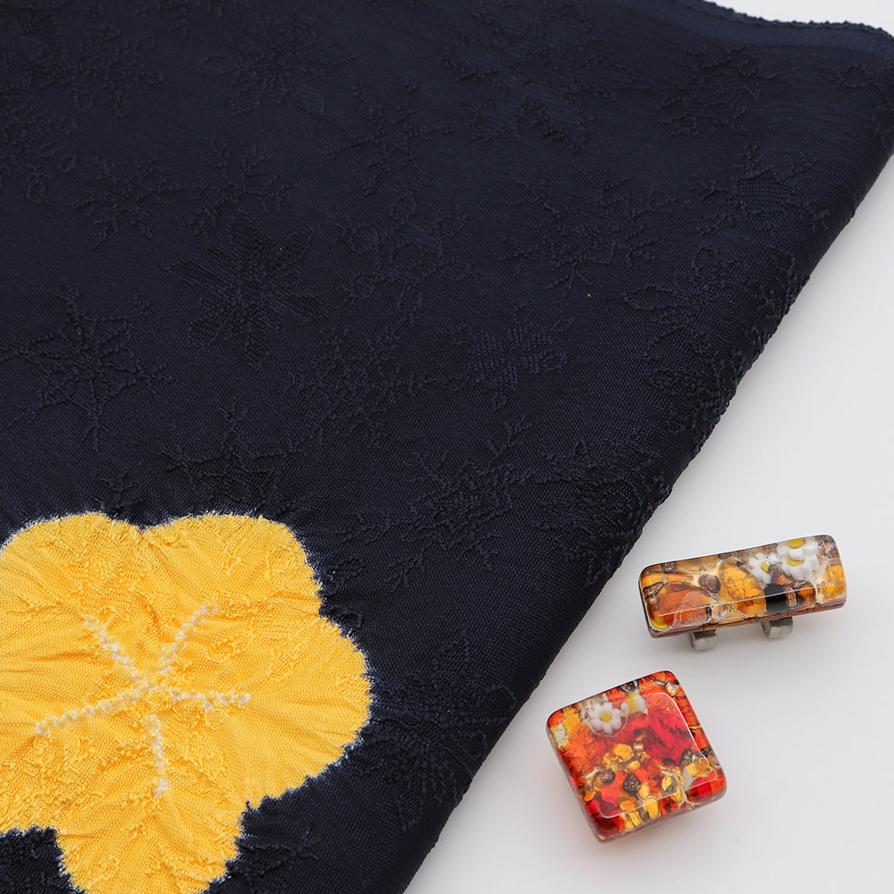 輪出し絞りは白色か淡色しかないと思っていた方に、ぜひともチャレンジしてもらいたい色合いの一枚。コーディネートのブラッシュアップに一役買ってくれそうです。