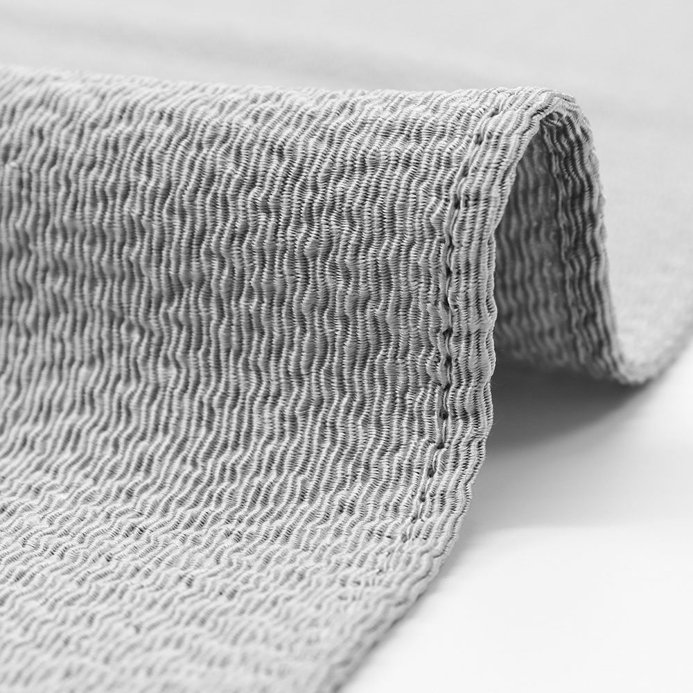 シボの大きな正絹ちりめんを無地染めした一枚。シンプルなグレーで活用シーンを選ばず、着姿を邪魔しない使い勝手の良さが魅力です。