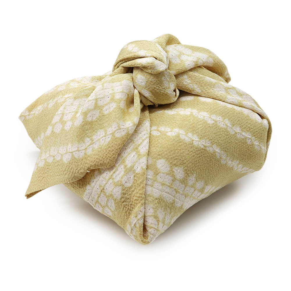 正絹のちりめん地に絞り染めを施した洒落感のある一枚。絞りの立体感や模様のぼかしが、風呂敷のイメージをより現代的に表現します。
