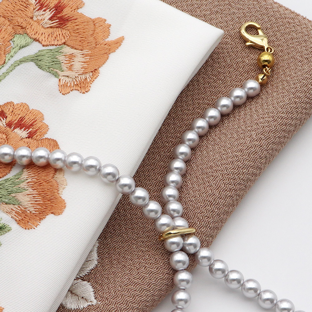 さらに、2本のパール紐を束ねている金具は取り外しが可能で、ループタイのように長さを自由に調節していただけます◎
