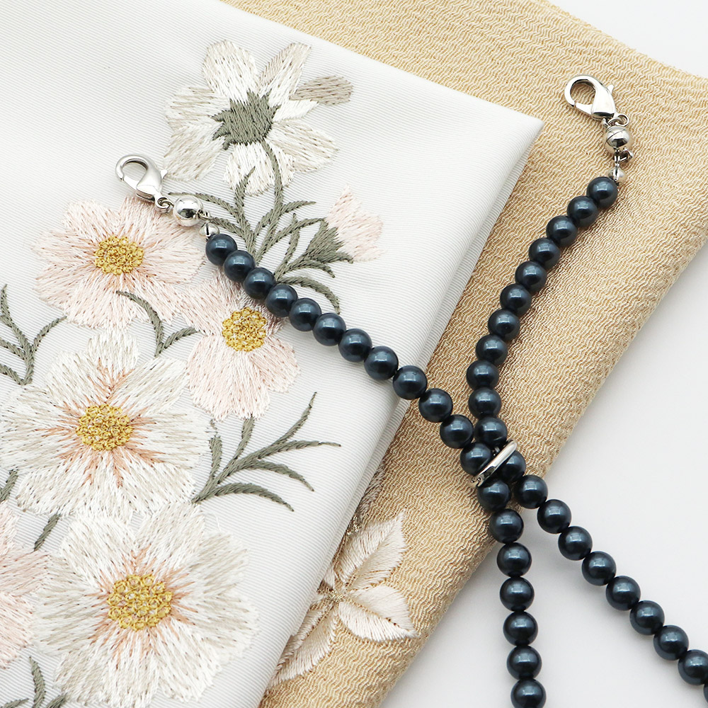 さらに、2本のパール紐を束ねている金具は取り外しが可能で、ループタイのように長さを自由に調節していただけます◎