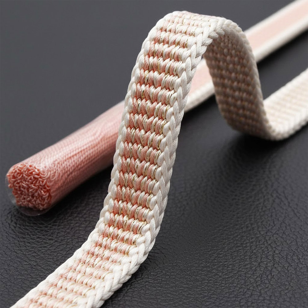 畳のような組み目が特徴的な源氏組みは、この凹凸が引っ掛かることで滑りにくく、一度締めるとゆるみにくいと評判の一本。ほどよい厚みとしなやかな組み上がりなので、手に馴染んで結びやすく、帯周りをしっかりと支えてくれる安定感も人気のポイントです。