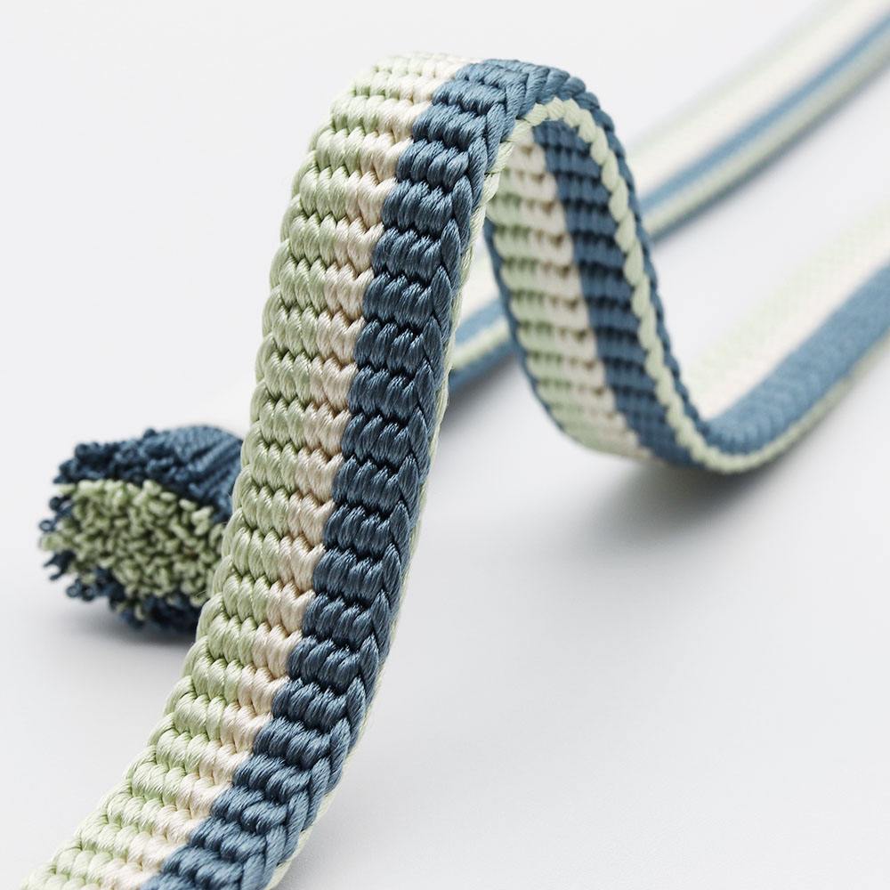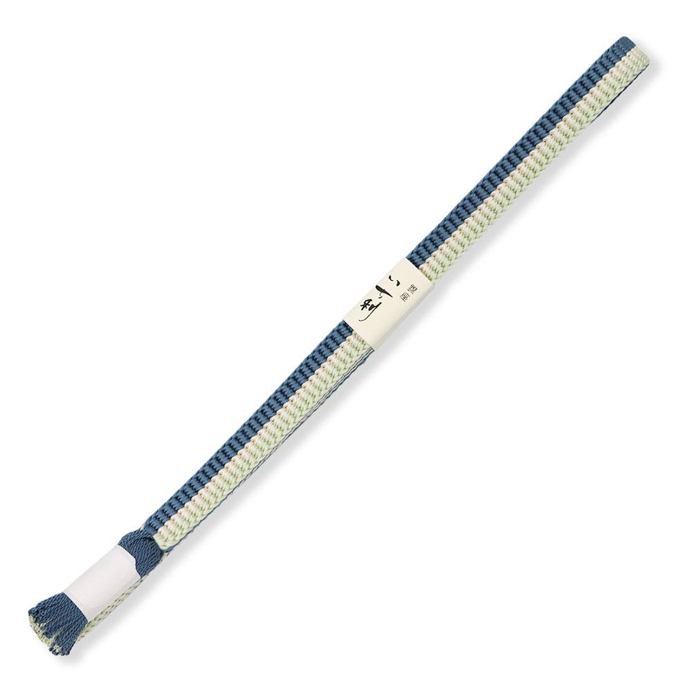 薄青×黄緑を立別に組んだ色彩豊かなデザイン。銀糸で組まれた耳が着姿のアクセントとなり、その輝きがちょっとした華やかさを与えてくれそうです。お手入れが簡単な撚り房なので、ヘビロテしても房の美しさが長持ちするのも嬉しいですね。