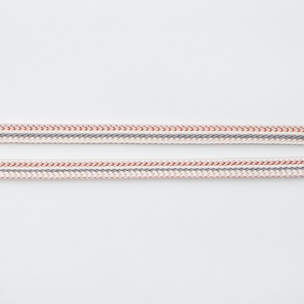 畝打ち組の立体感と、源氏組みのしなやかさを持ち合わせた一本。薄桜を基調に三色使いで組み上げた、淡色のシンプルデザインになっています。