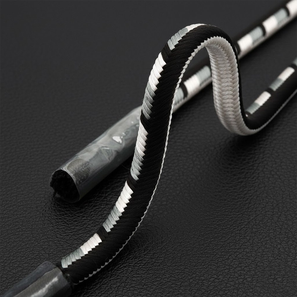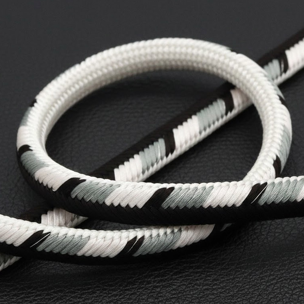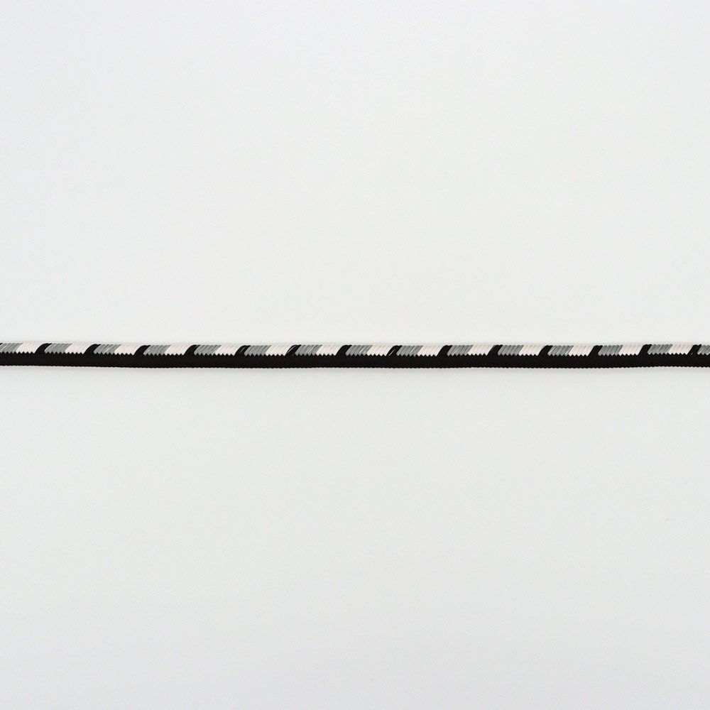 スタイリッシュなこげ色と、現代的なカラーで仕上げた斜め縞を立別で配した奈良組みの一本。密な組みによる美しい絹光と、さりげなく組み込まれた一筋の銀糸が上品なきらめきを演出します。