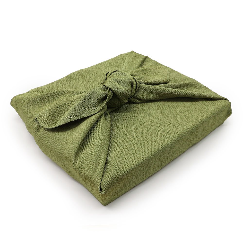 こちらは一般的なサイズのひとつである二四巾(にしはば)サイズで、菓子折りの包みや小さなバッグはもちろん、一升瓶やワインなどの大きなものも包んでいただけます。贈り物用の袋を風呂敷に変えるだけで、よりいっそう真心を伝えられそうですね。