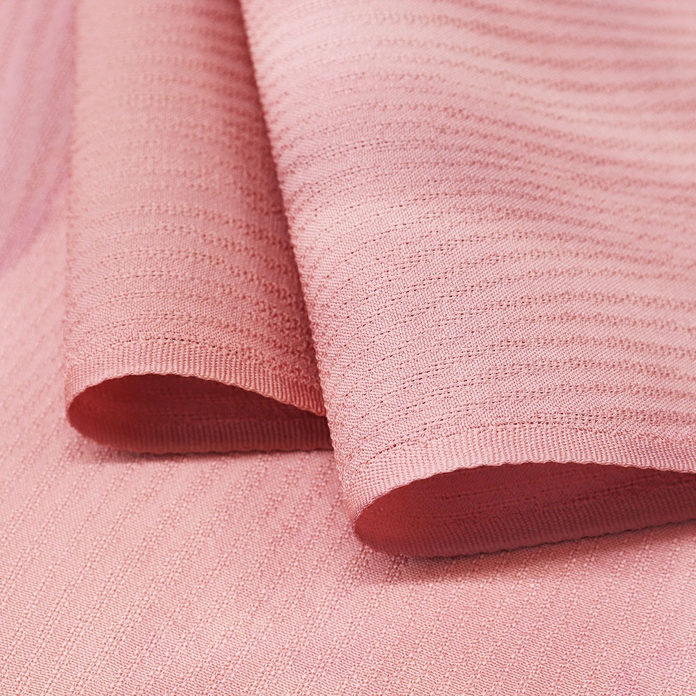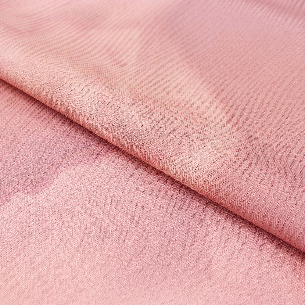 鮮やかな桃色に染めた縮緬生地に、直線的なぼかしが配されてモダンな一枚。少しシャリッとした質感と微かな透け感が、単衣として軽やかな着心地を生み出しています。