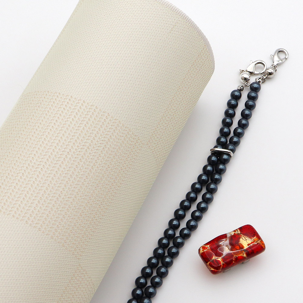 さらに、2本のパール紐を束ねている金具は取り外しが可能で、ループタイのように長さを自由に調節していただけます◎