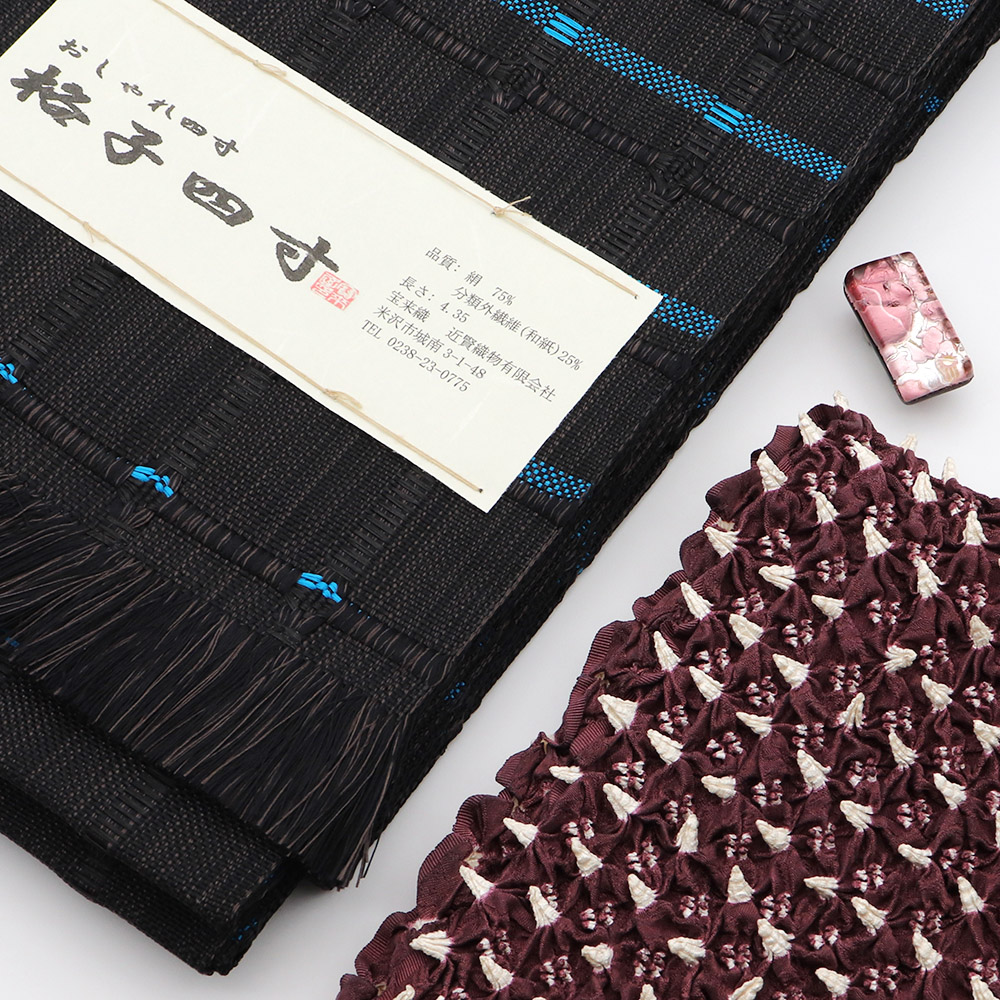 創業1900年、100年以上の歴史をもつ米沢の宝来屋【近賢織物】謹製の半幅帯『格子』。