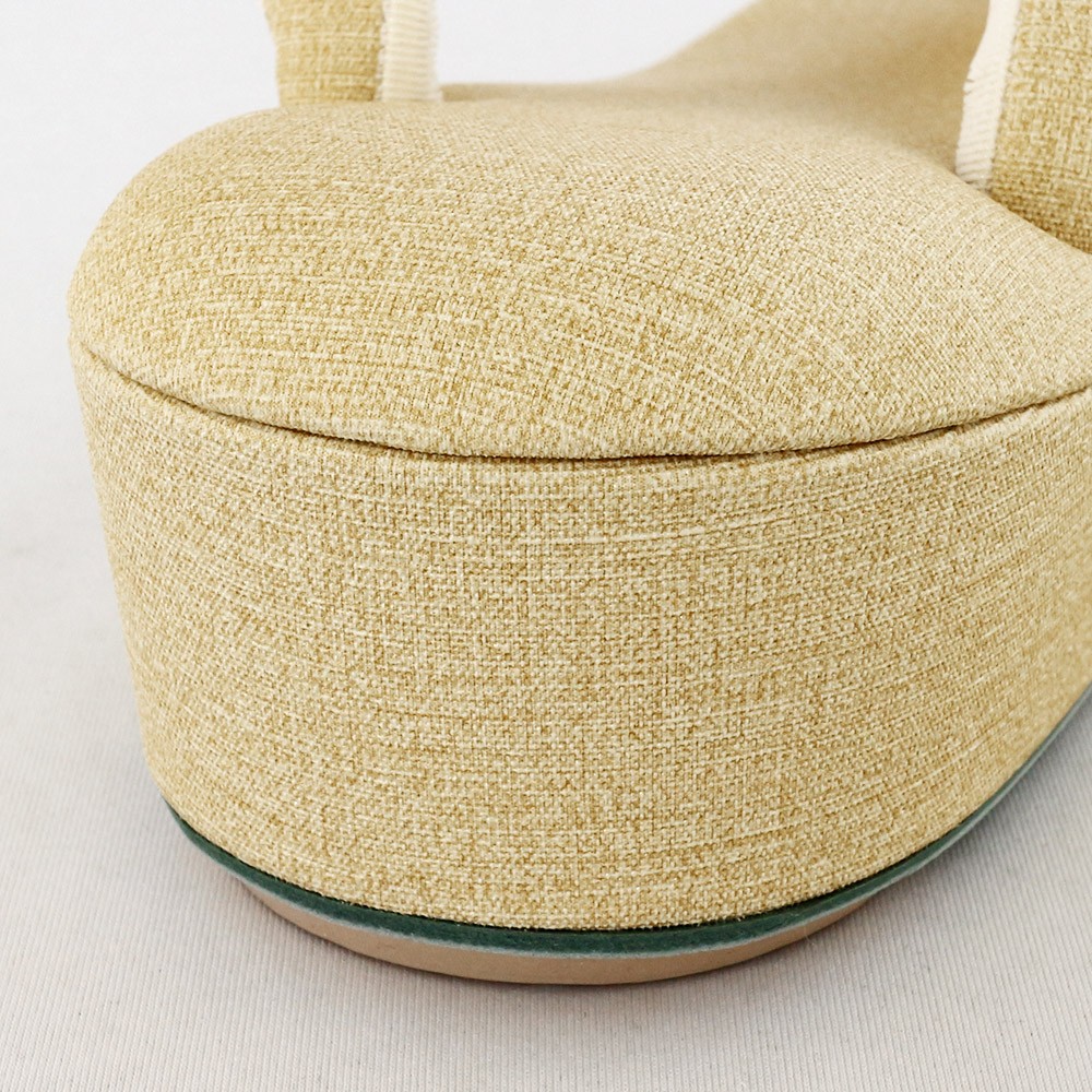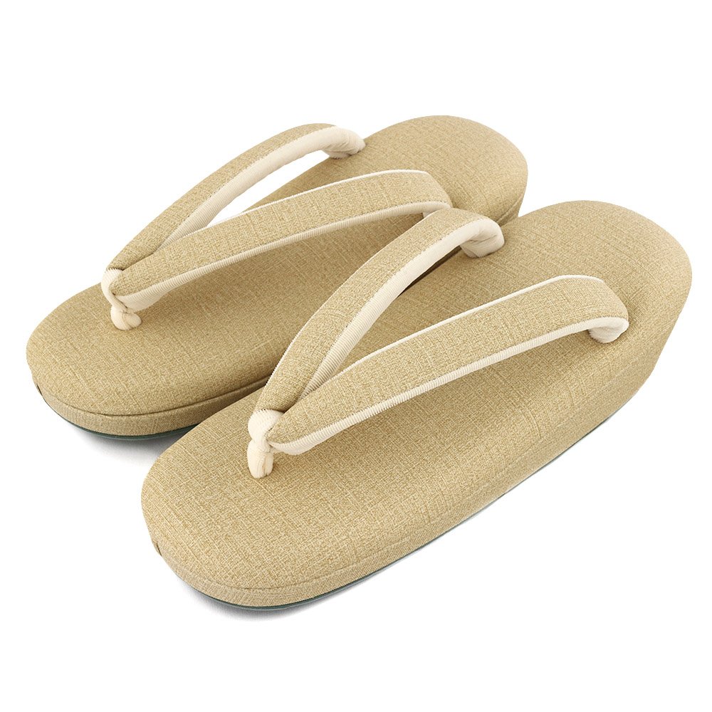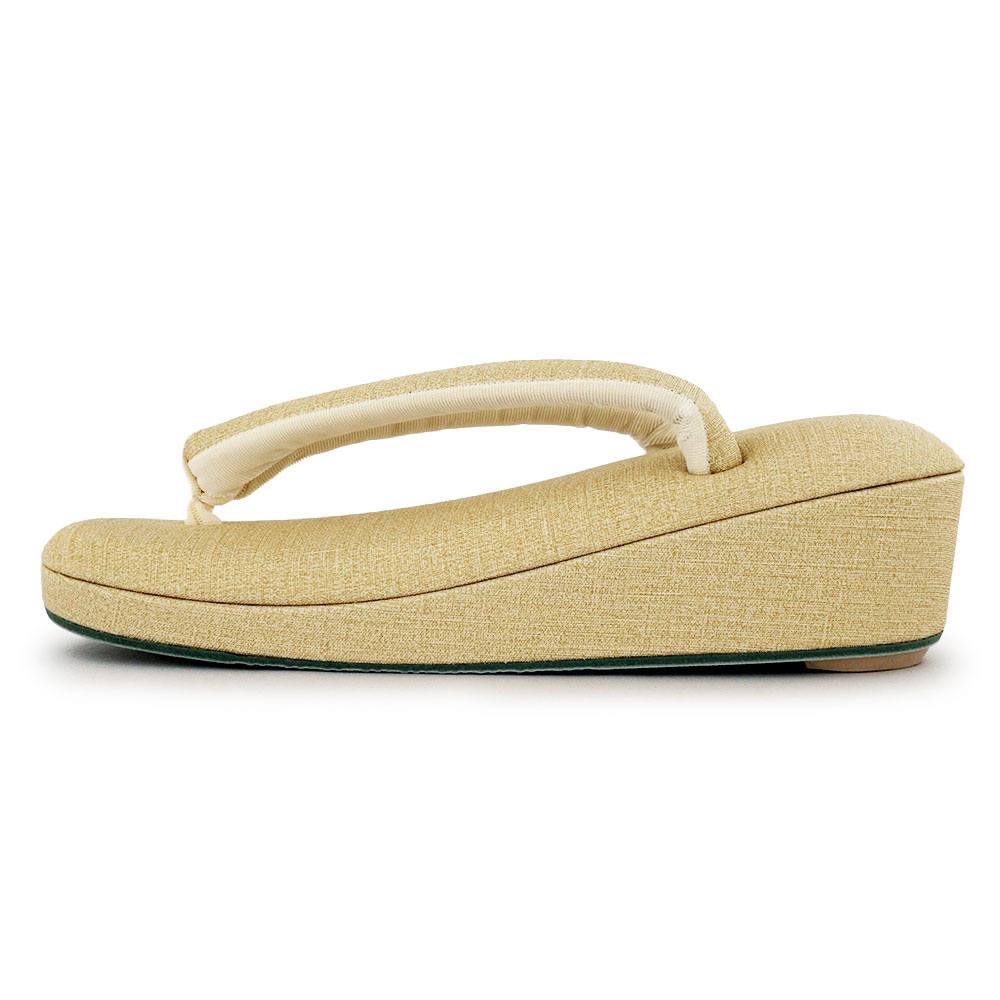 橙色みの強いベージュ一色の紬風生地は、紬らしい温かみを持ちながら程よく艶やかで、きちんと感漂う美しい仕上がりです。優しい色味とシンプルなデザインは、どんな着物にも合わせやすく、定番草履の一足として長くご愛用いただけることでしょう。