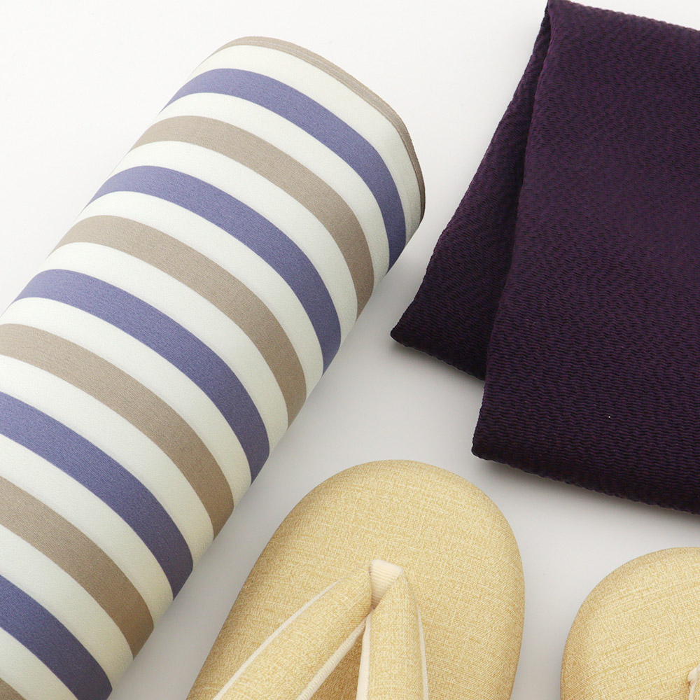 紫とベージュの棒縞模様がモダンな正絹長襦袢。