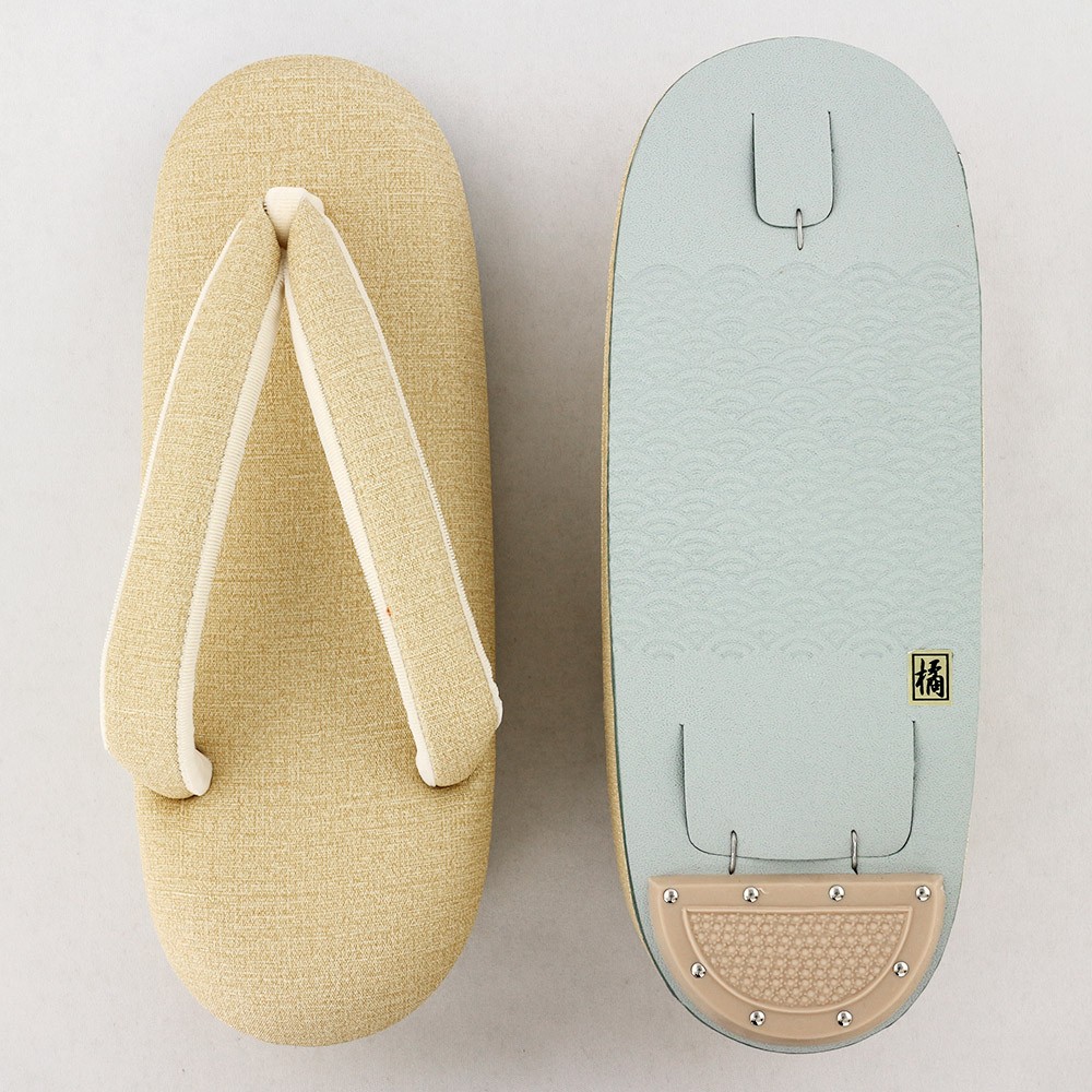 草履の天・台・鼻緒に、紬の風合いを表現した生地を使用した草履が入荷しました。