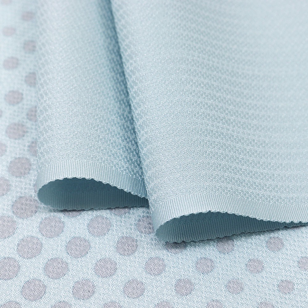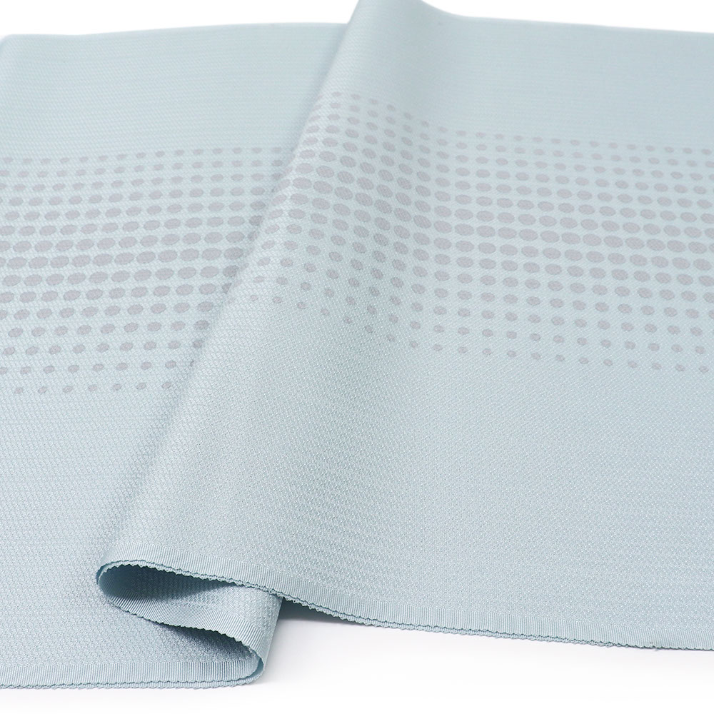 ドット柄が並べられたポップな一枚です。端に向かって小さくなっていくデザインや、水色×グレーのアイシーな色合いが、ポップな雰囲気の中にモダンさもちょっぴりプラス。