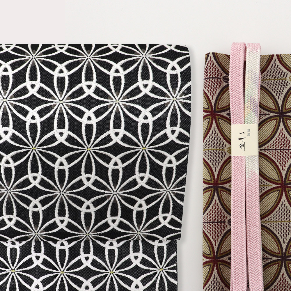 しなやかな帯地に、花繋ぎの模様を織り上げた意匠。伝統的でありながら、どこかモダンさが漂うハイセンスな仕上がりです。その佇まいはコーディネートを凛と引き締め、気品ある着姿を演出してくれるでしょう。