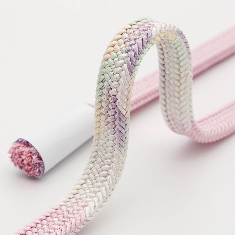 片胴にぼかし模様を入れることで、帯周りのアクセントを簡単に取り入れられるデザインです。ぼかし模様と同様にカラフルな撚り房にもご注目♪締めるだけでパッと明るく華やかな雰囲気を演出してくれるでしょう。