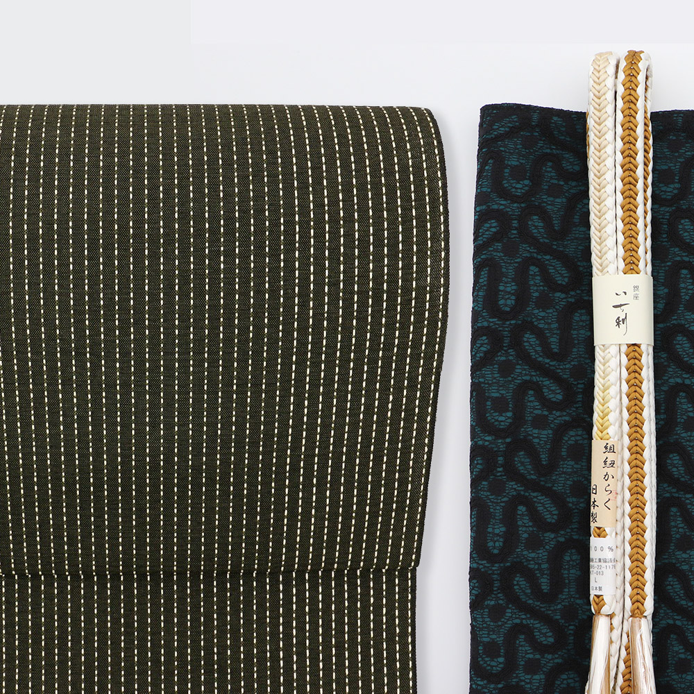 創業1900年、100年以上の歴史をもつ米沢の宝来屋【近賢織物】謹製の八寸帯『縞紋様諸紙布』。