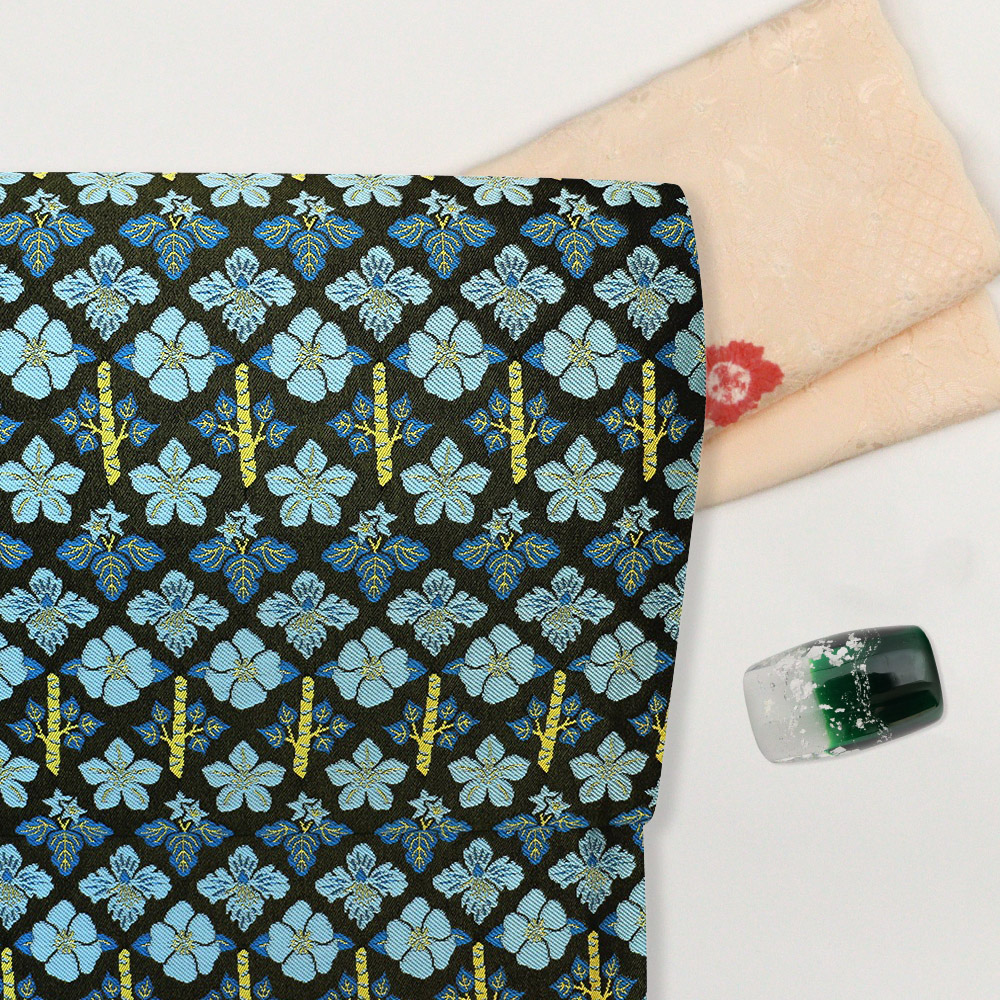 様々な草花紋を規則正しく織り出した意匠は、伝統の中にモダンさをプラスした名門の成せる業。選び抜かれた色使いは、上品で洗練された雰囲気を醸し出し、長年培われてきた美的感覚ならではの風情があります。