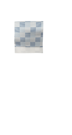 青や水色で構成されるブロック市松の柄行きは、博多織には珍しいシンプルモダンな雰囲気。単衣の時期や盛夏などオールシーズンおすすめです。