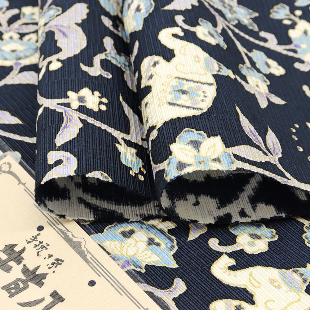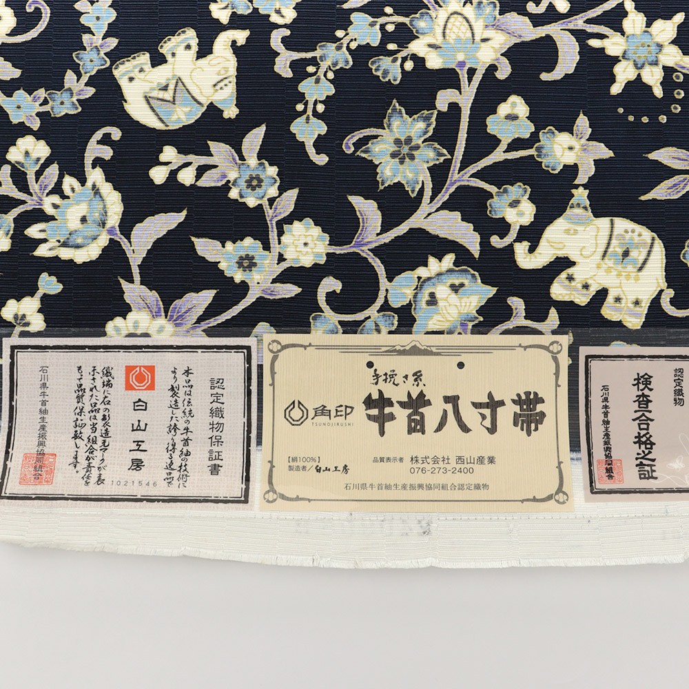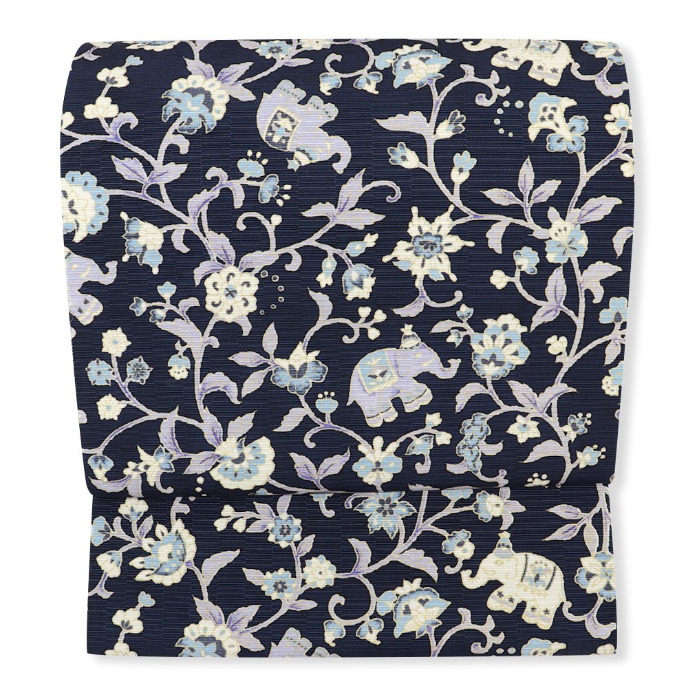 牛首八寸名古屋帯(象更紗)【白山工房×岡重】