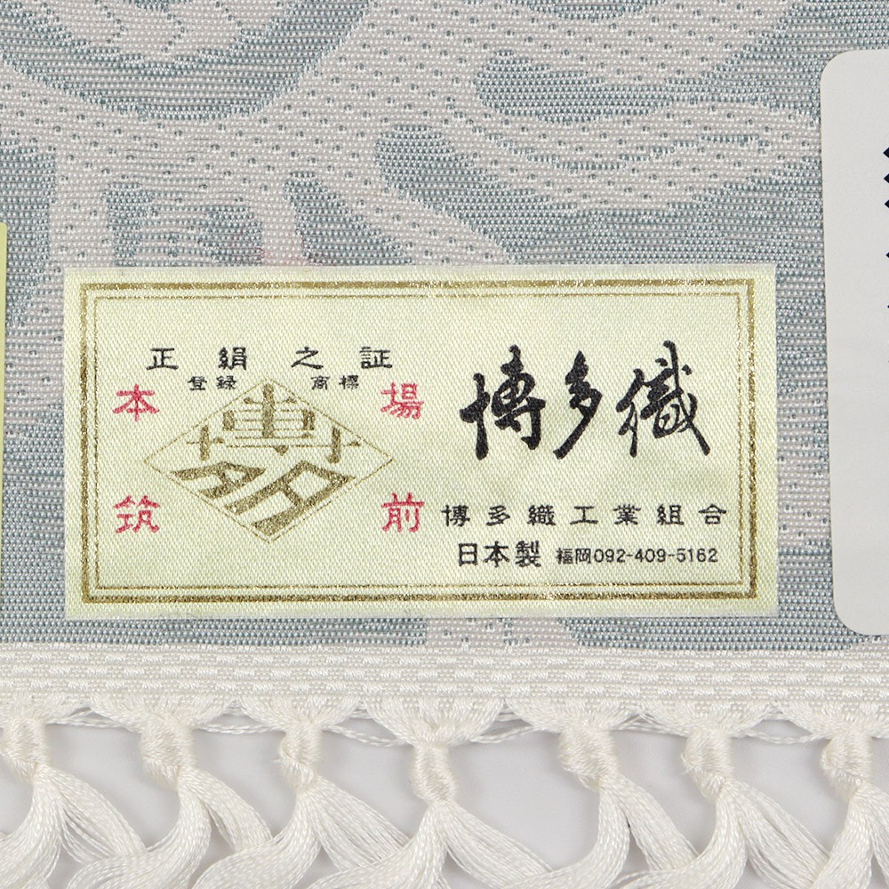 博多織工業組合「金証紙」付き【松装織物】による、八寸名古屋帯。