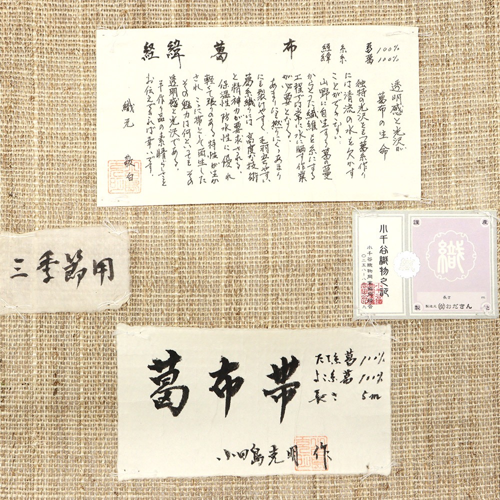 製織は決して容易くなく、「撚りにくい、裂けやすい、毛羽立ちやすい」といった葛糸の特徴から、非常に高度な織り技と精神力を必要とする希少な一本です。