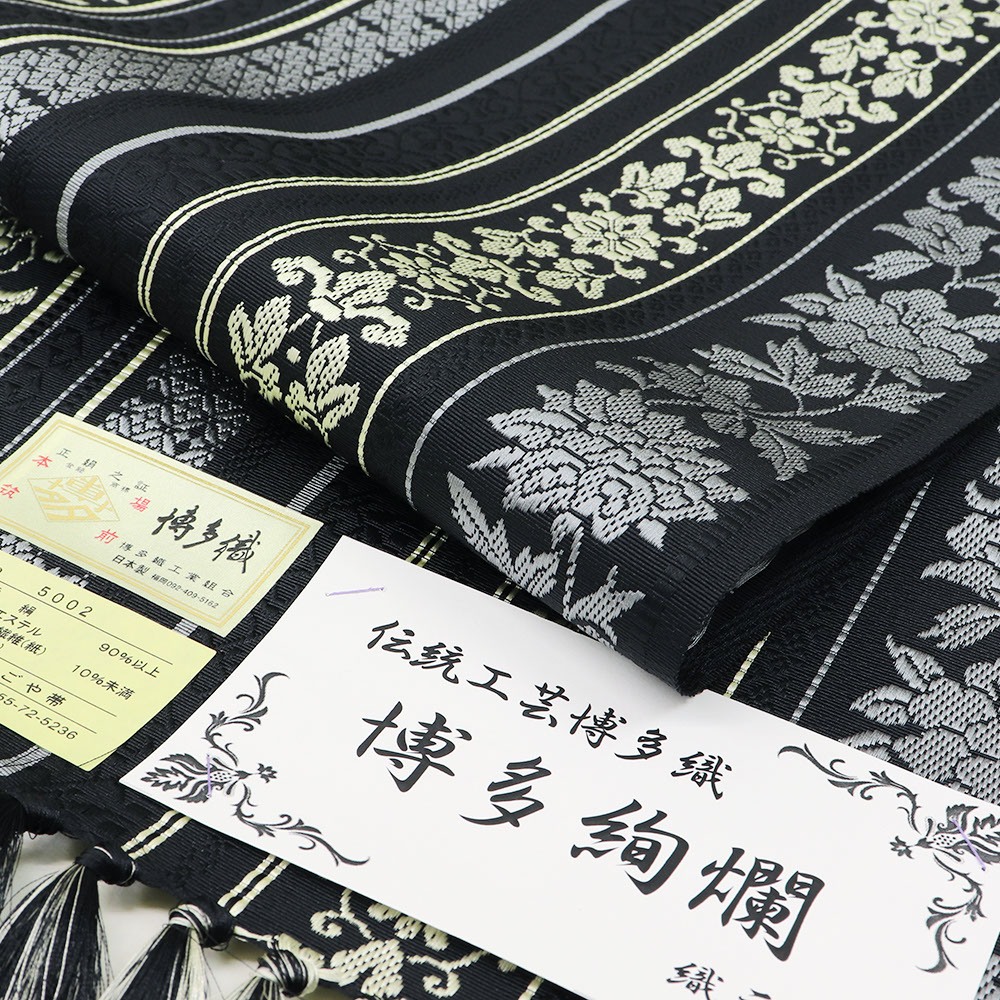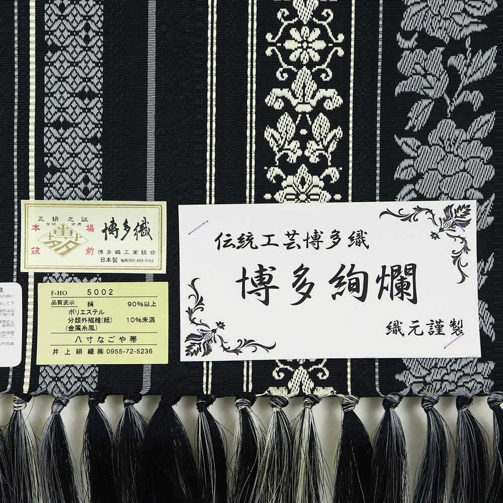 創業以来、博多織の様々な可能性を追求している【井上絹織】謹製の、金証紙付き博多織八寸名古屋帯『博多絢爛』シリーズ。