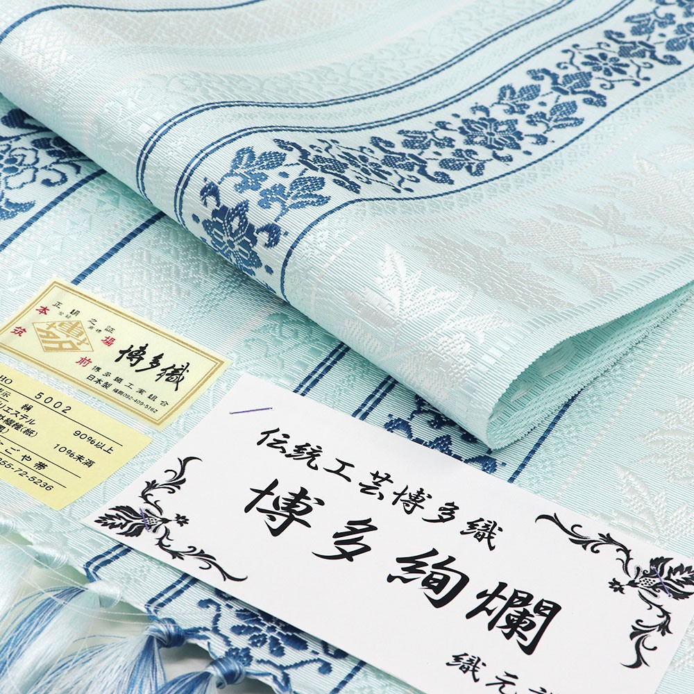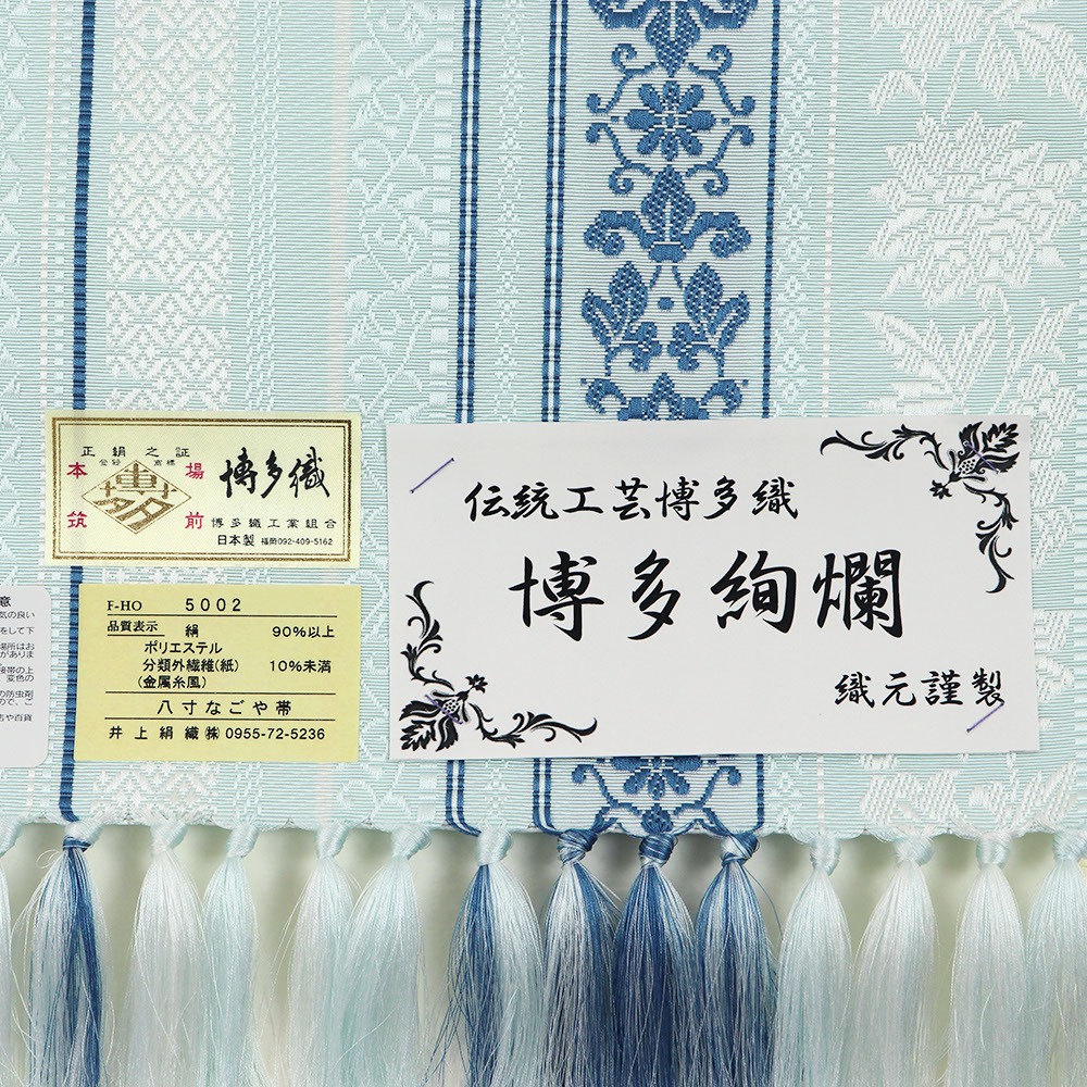 創業以来、博多織の様々な可能性を追求している【井上絹織】謹製の、金証紙付き博多織八寸名古屋帯『博多絢爛』シリーズ。