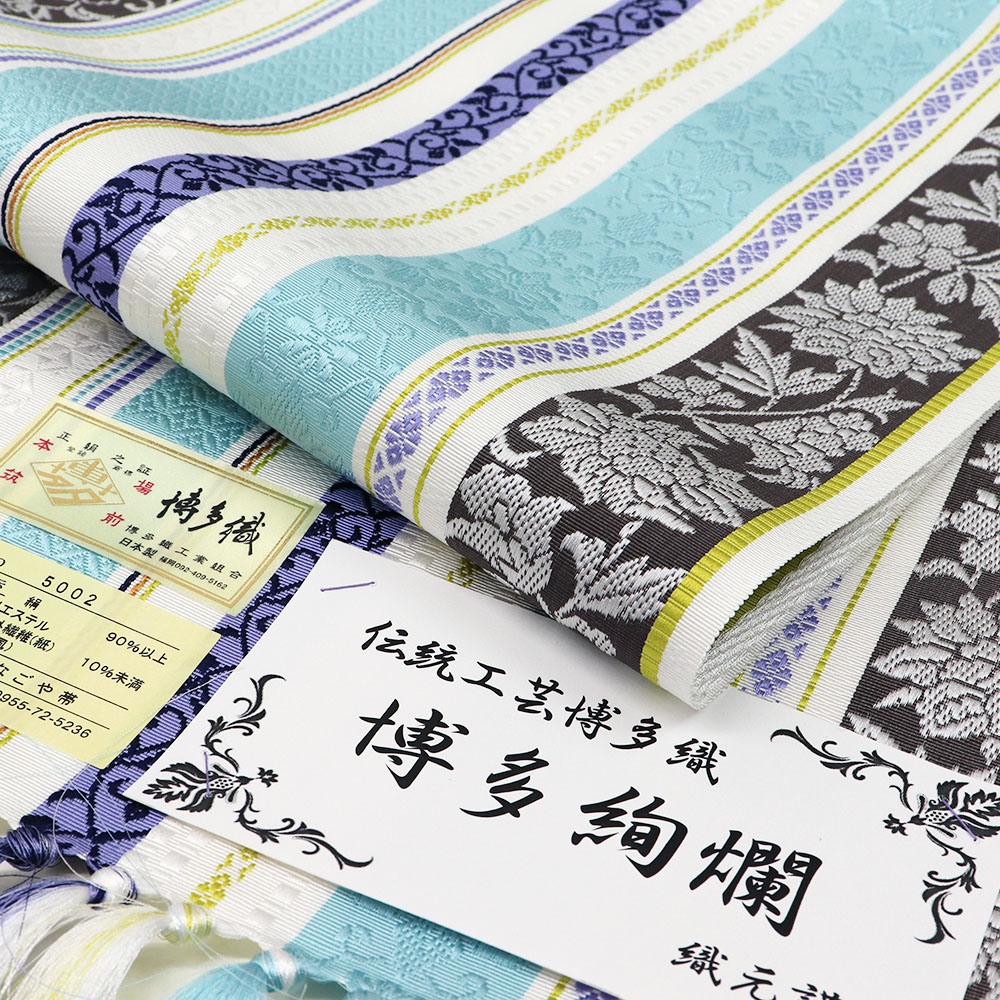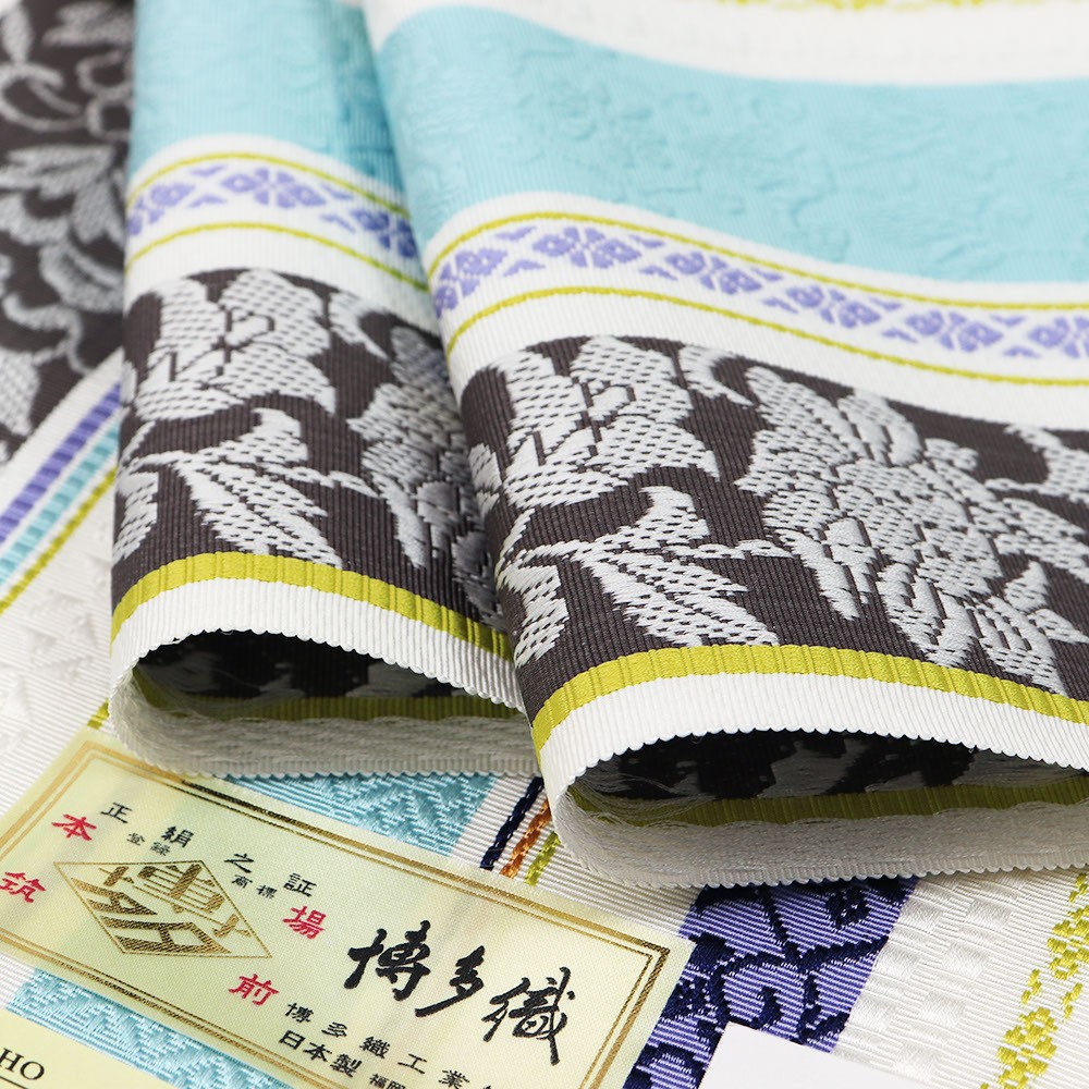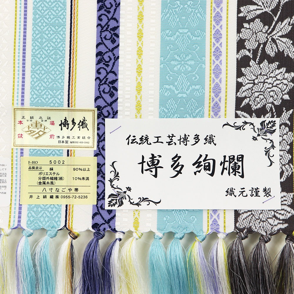 創業以来、博多織の様々な可能性を追求している【井上絹織】謹製の、金証紙付き博多織八寸名古屋帯『博多絢爛』シリーズ。