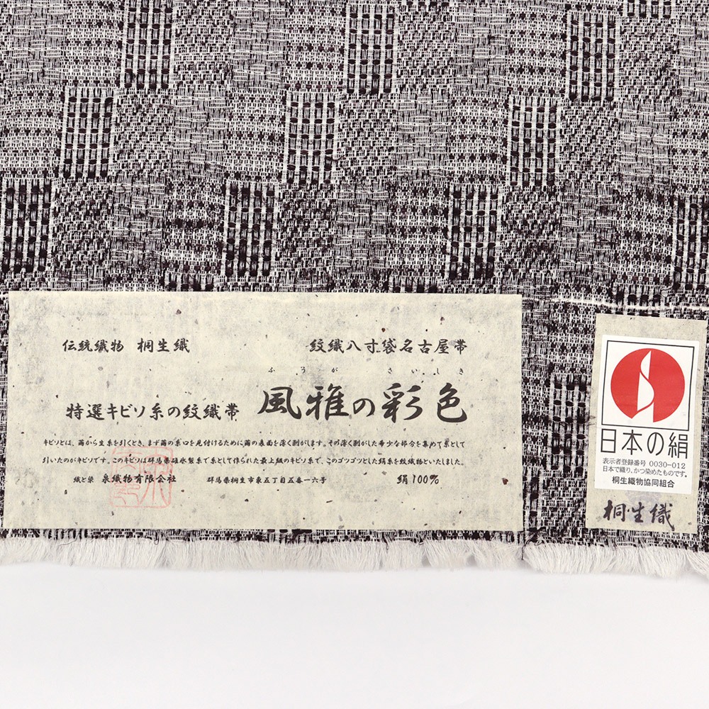 桐生紋織八寸名古屋帯(キビソ糸/長市松)『風雅の彩色』【泉織物】