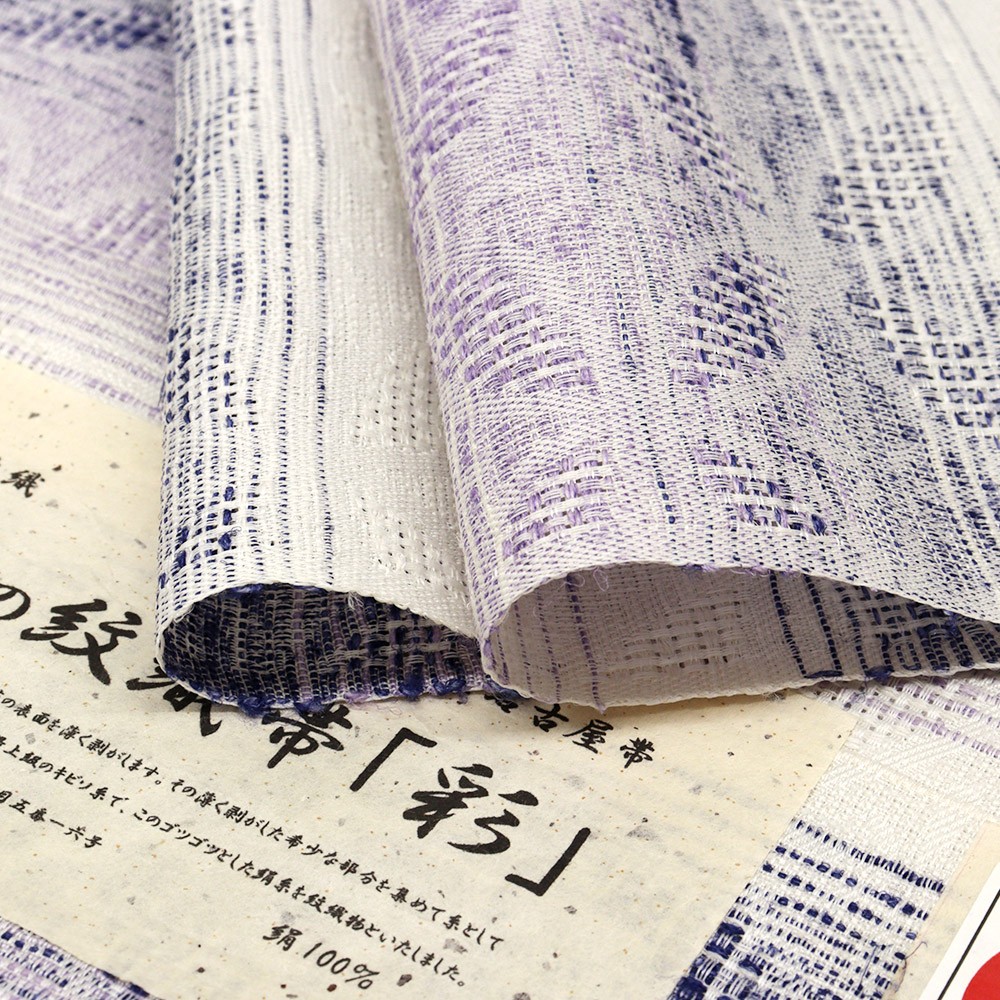 【桐生絞・桐生織 泉織物】による、桐生紋織八寸名古屋帯『彩』。