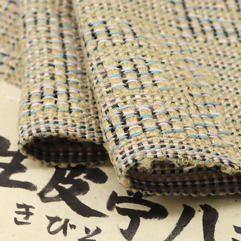 こちらは、そんな生皮苧を緯糸に用いて、もじり織で柄を織り出した一本。生皮苧ならではの質感と、アースカラーがマッチした温かみのある仕上がりです。