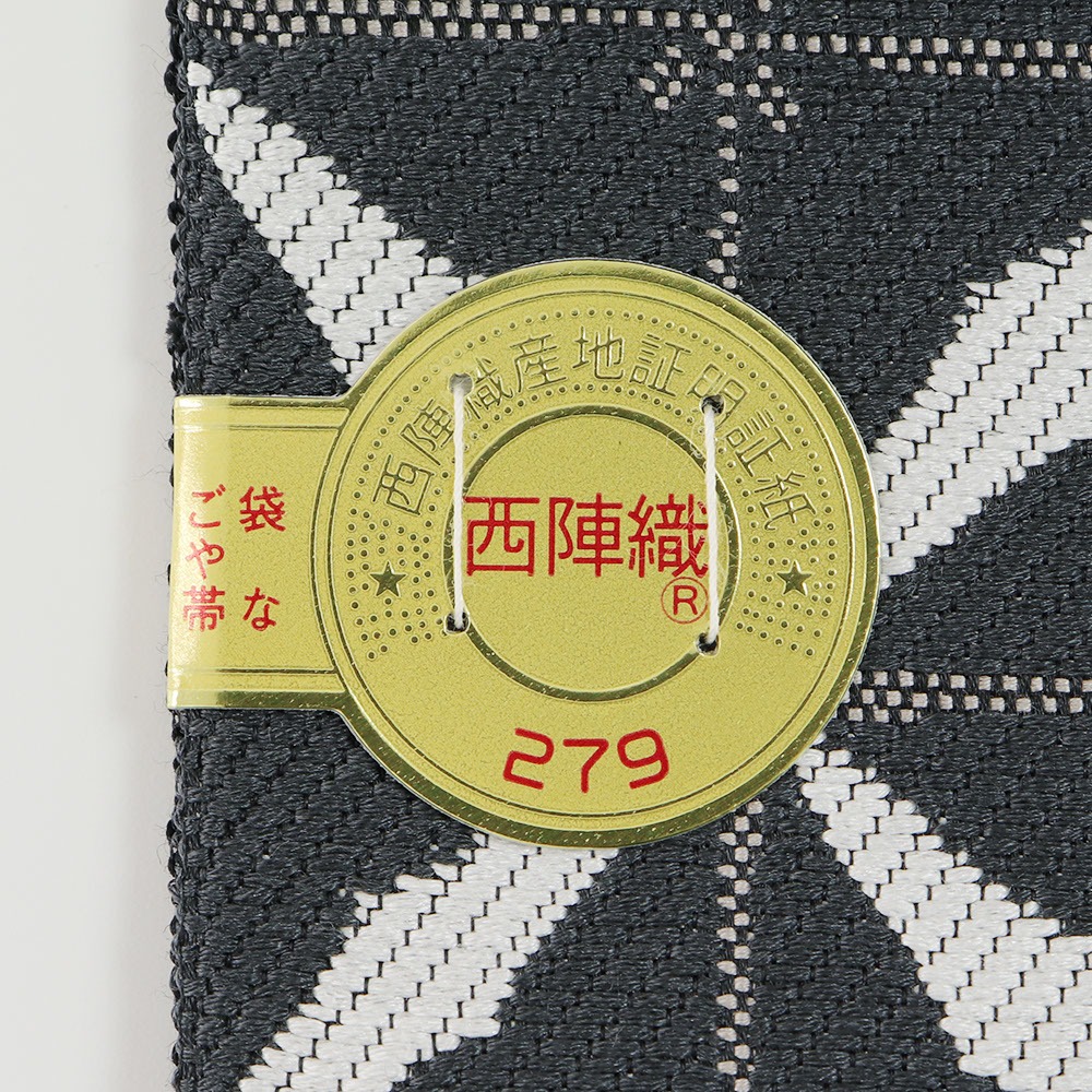 西陣商標登録番号「279」、老舗【弥栄織物】の八寸名古屋帯。