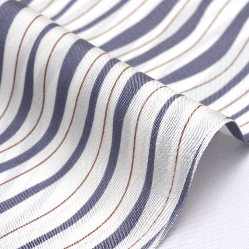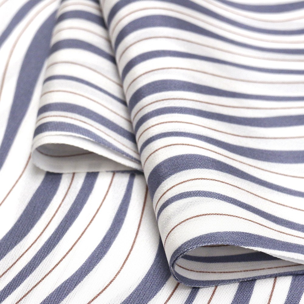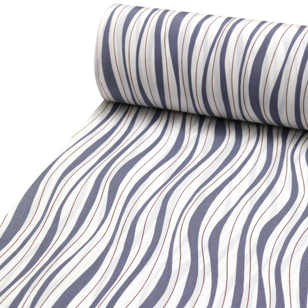 藤色と茶色のよろけ縞を乗せたポップなデザインです。着物の袂や袖からチラリと柄行きをのぞかせてオシャレのポイントに。