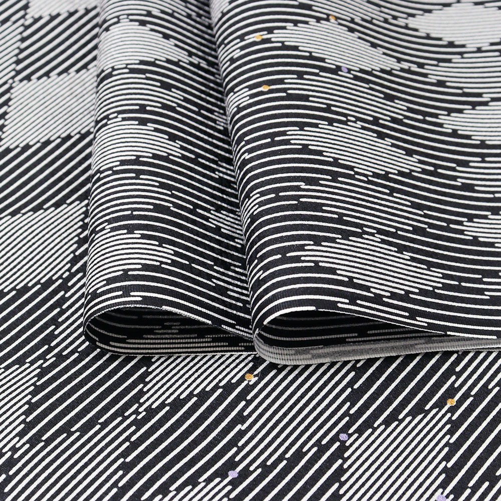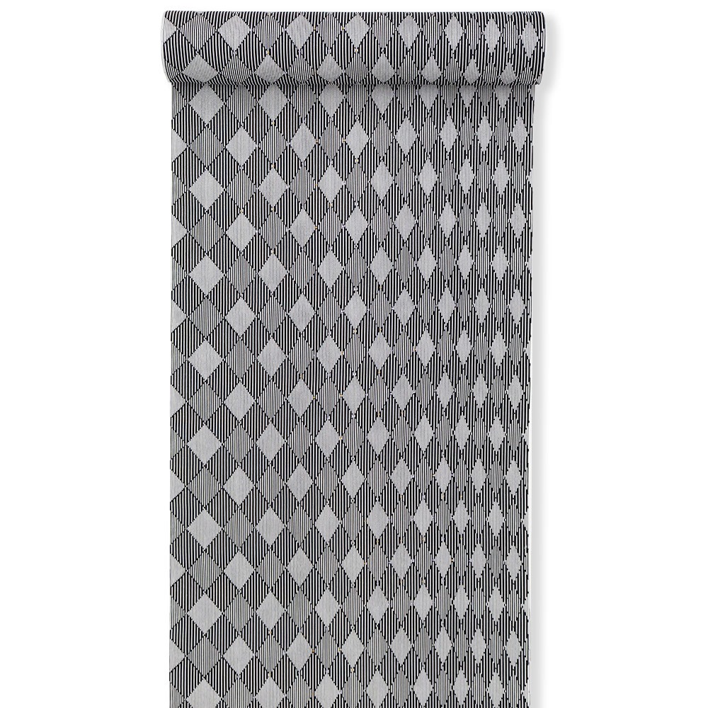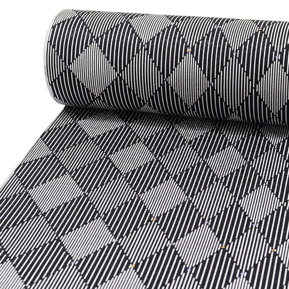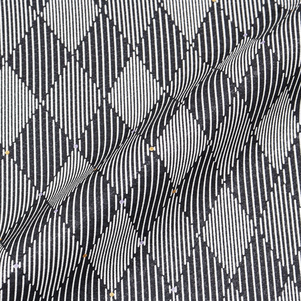 黒を基調に、ダイヤ柄に縞模様を配したモダンな正絹長襦袢。