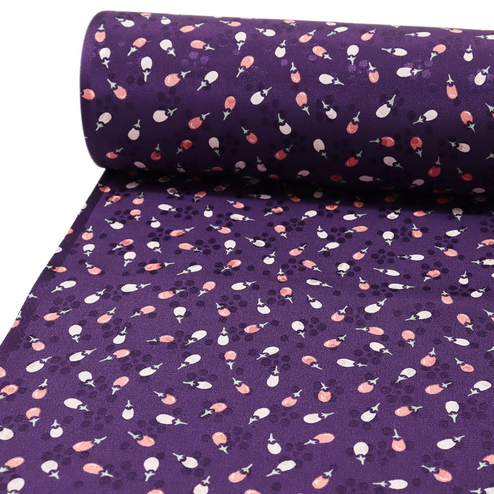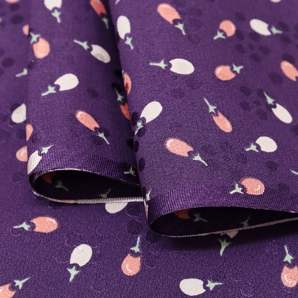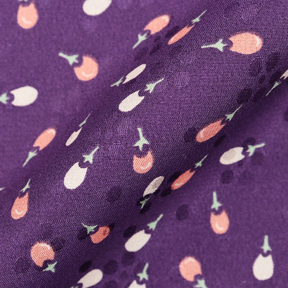 豊かな模様を織り出した地に、縁起物として親しまれる茄子の柄行きが広がる正絹長襦袢。