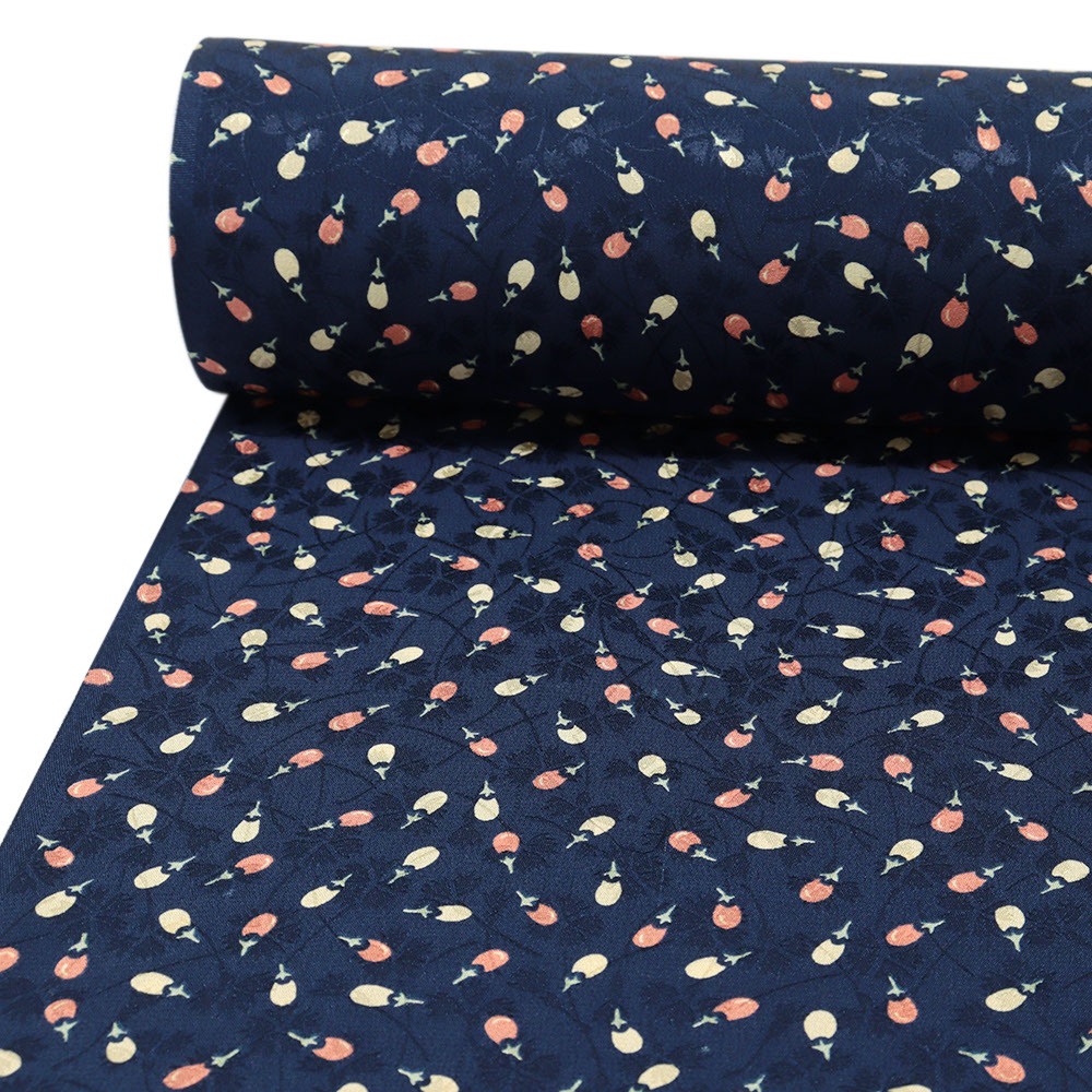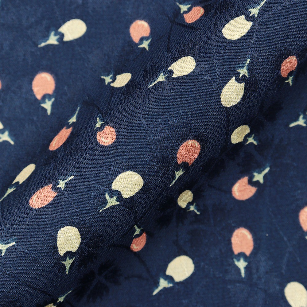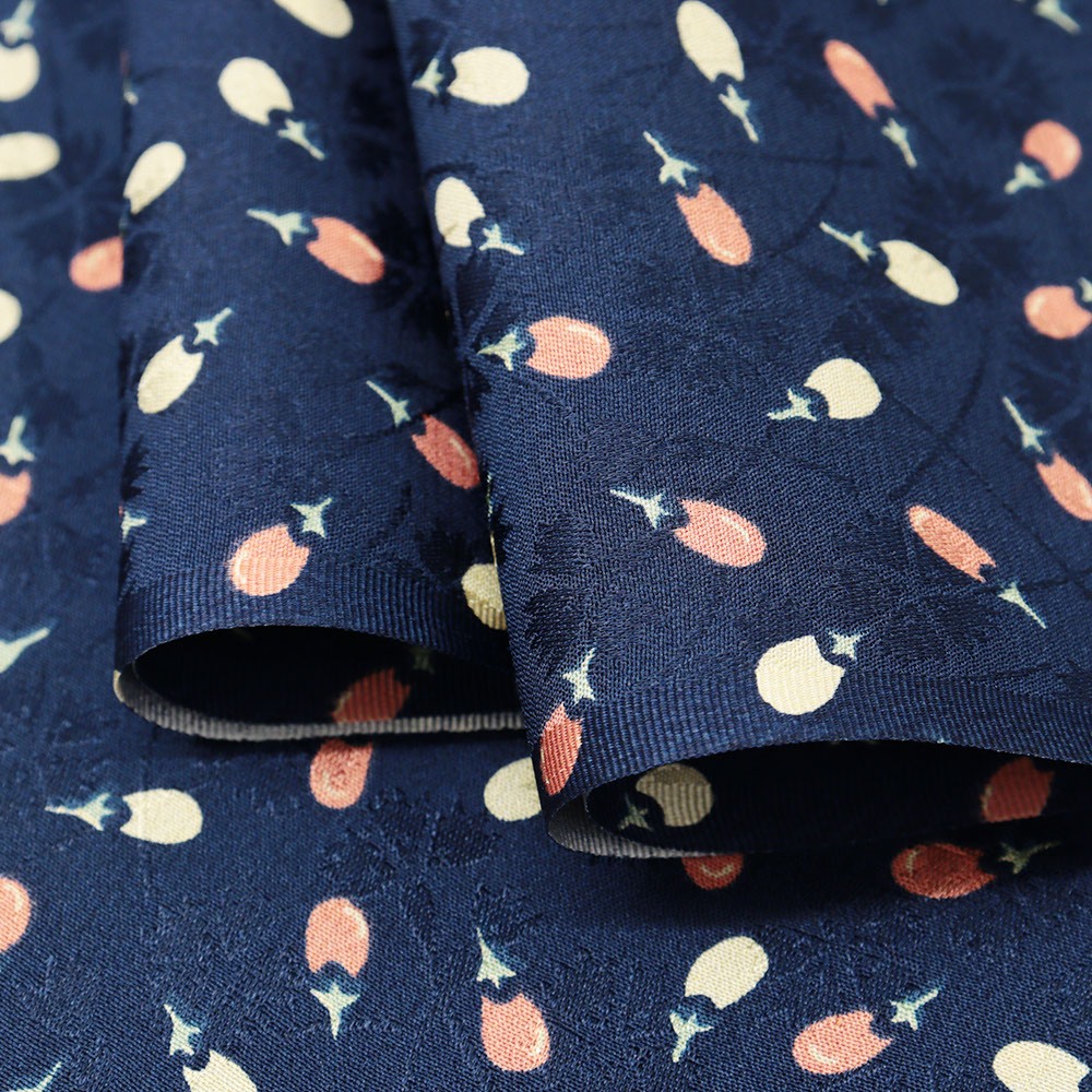 豊かな模様を織り出した地に、縁起物として親しまれる茄子の柄行きが広がる正絹長襦袢。