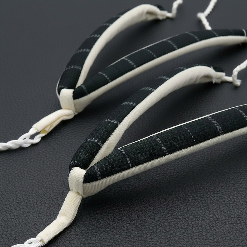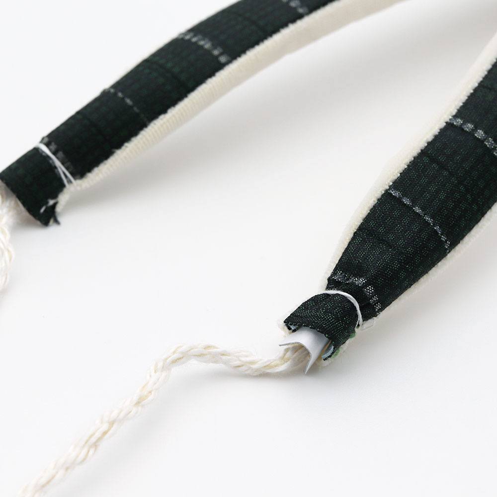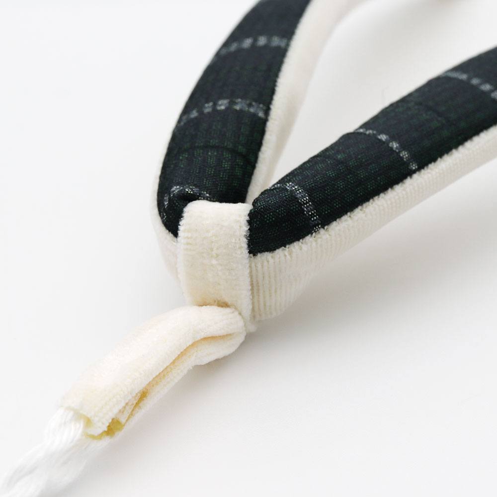 こちらの鼻緒は、着物や帯地を使用した絹100%で、デザイン性が高く重厚感のある仕上がりです。鼻緒裏は、足に当たっても痛くなりにくい柔らかな裏起毛。前坪も柔らかな素材を使用し、優しいクリーム色がどんな台にも合わせやすいですね。