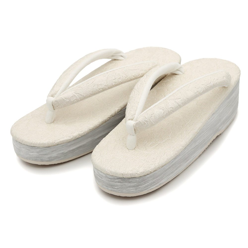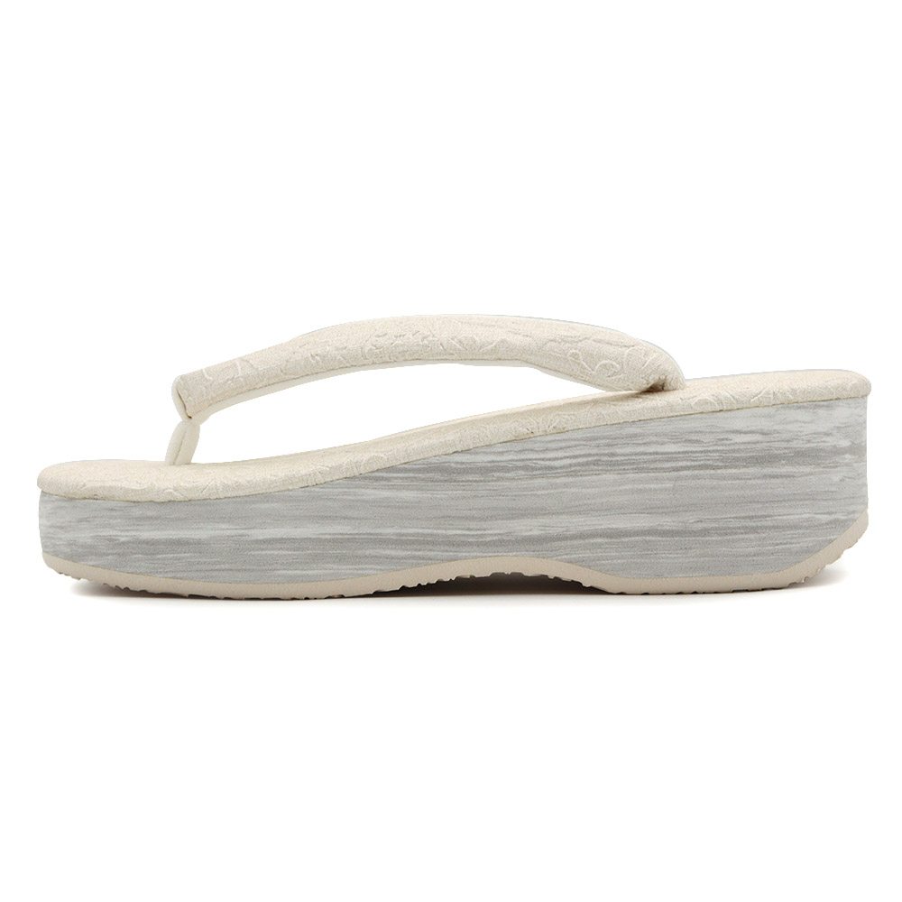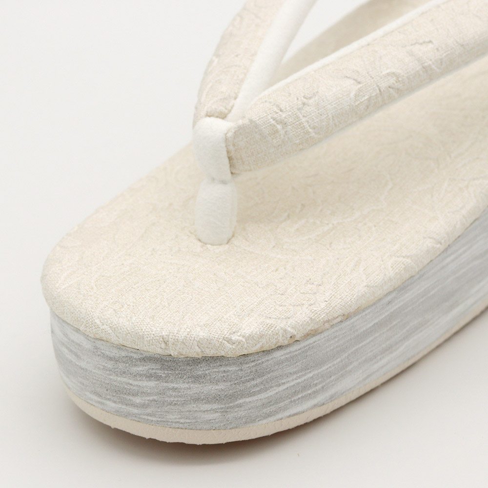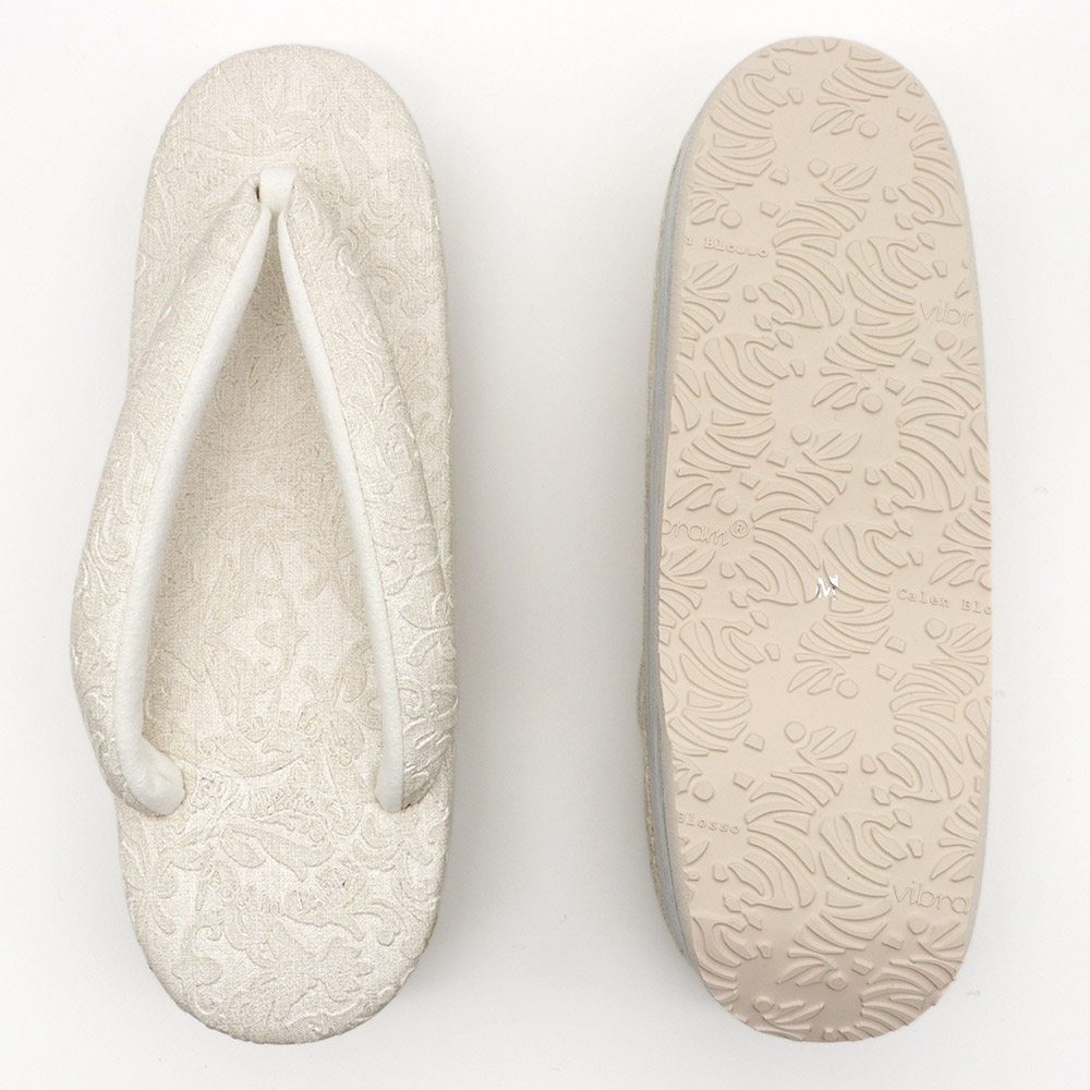 草履天、鼻緒にボタニカル模様を型押しした立体感あるデザイン。ワントーンながら、存在感と洒落感あふれる仕上がりです。