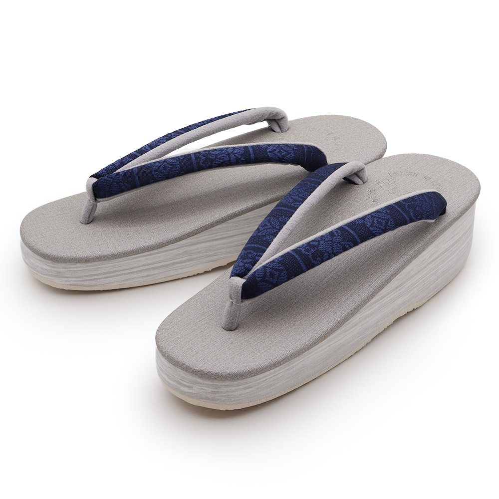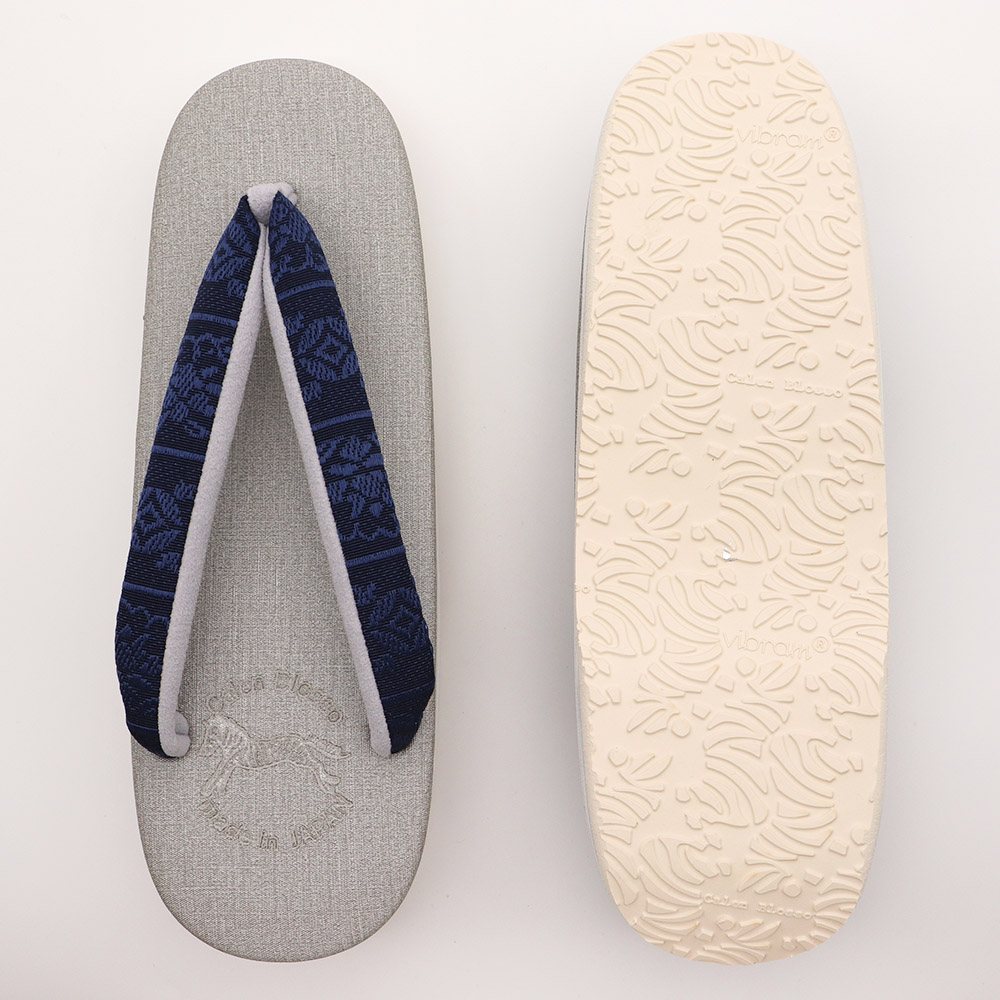 鼻緒には、しっかりとした打ち込みから生まれるしなやかな質感や絹艶が特徴の博多織地をチョイス。