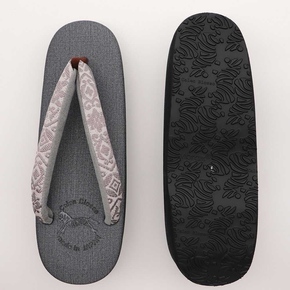 鼻緒には、しっかりとした打ち込みから生まれるしなやかな質感や絹艶が特徴の博多織地をチョイス。