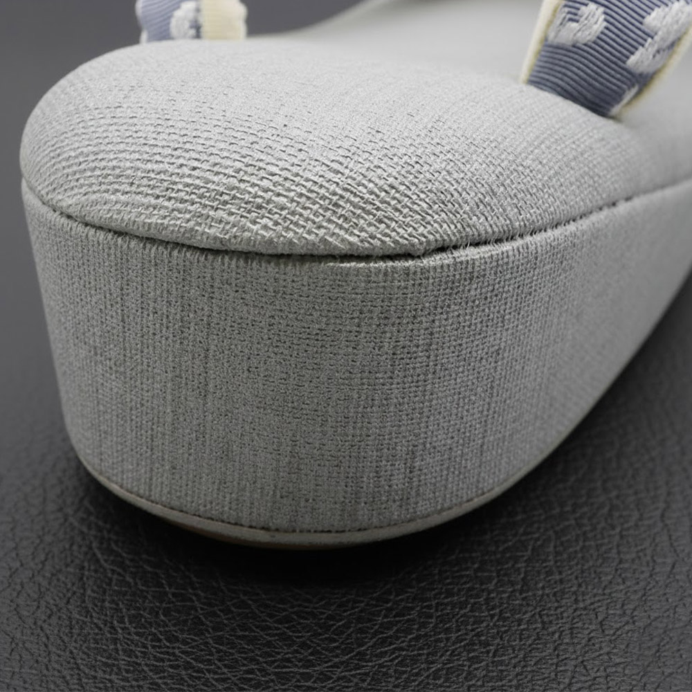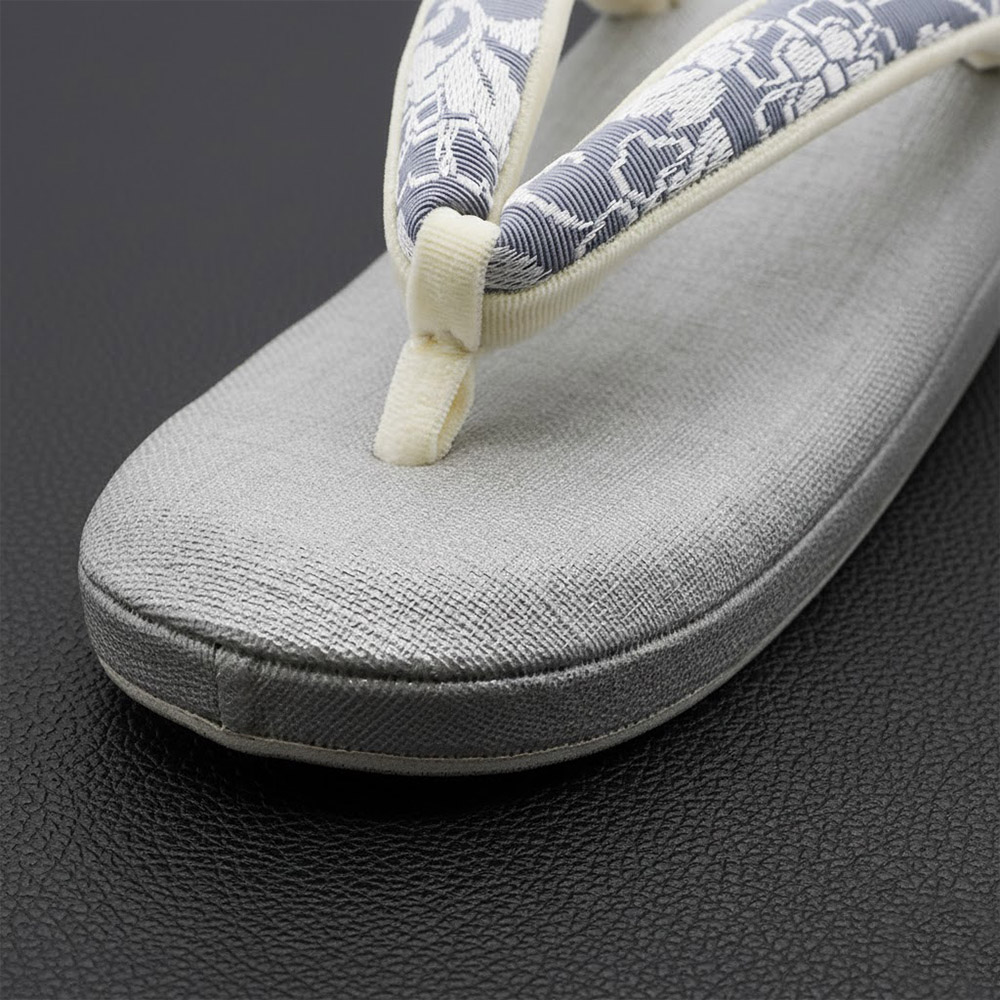博多織は、しっかりとした打ち込みから生まれるしなやかな質感や絹艶が特徴。どんなコーディネートも引き締めてくれる万能さで、鼻緒にあるだけで足元から着姿を彩ってくれるでしょう。一枚芯なので気取ることなく、カジュアルにお楽しみいただけます。
