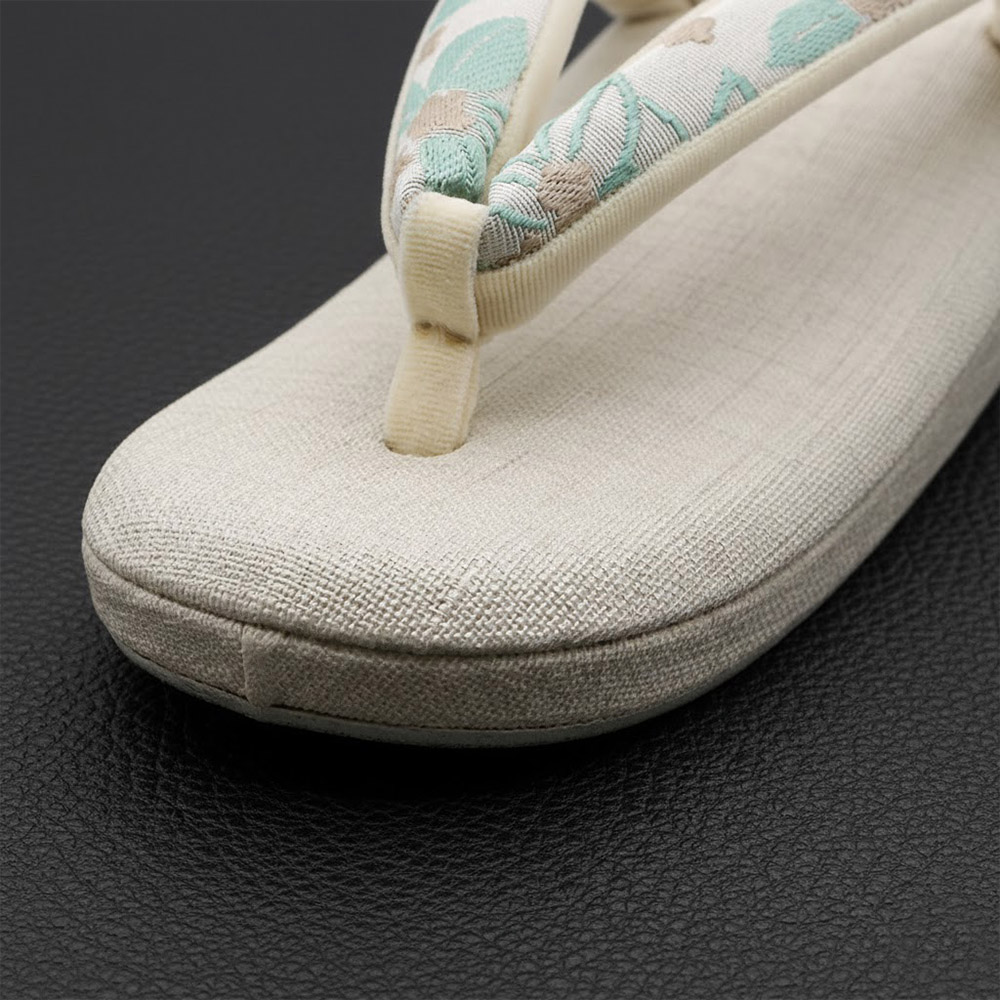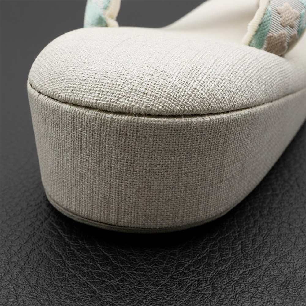博多織は、しっかりとした打ち込みから生まれるしなやかな質感や絹艶が特徴。どんなコーディネートも引き締めてくれる万能さで、鼻緒にあるだけで足元から着姿を彩ってくれるでしょう。一枚芯なので気取ることなく、カジュアルにお楽しみいただけます。