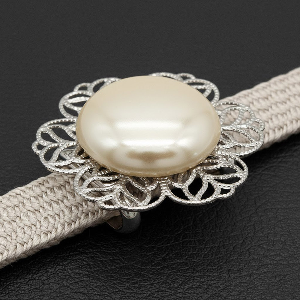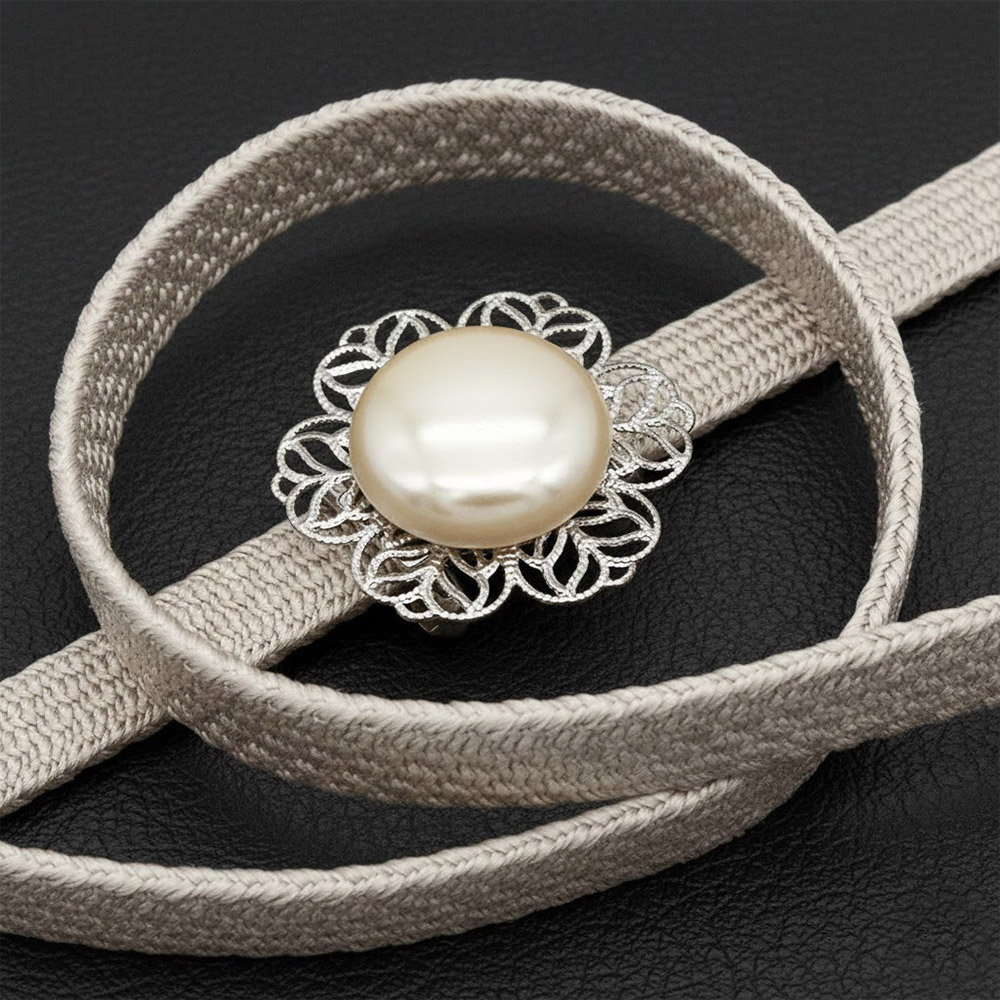 帯留付き三分紐帯締(フラワー/ホワイト_大)【大原商店】