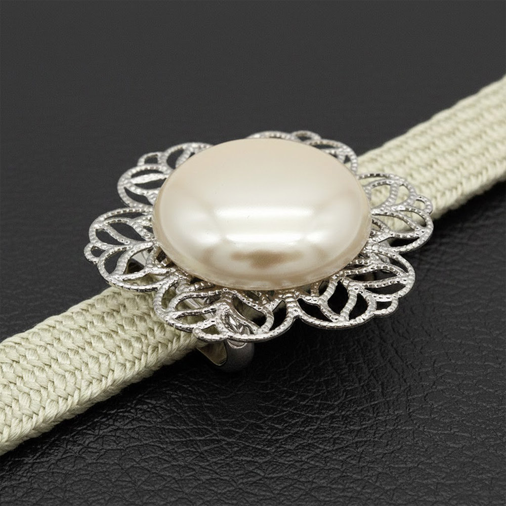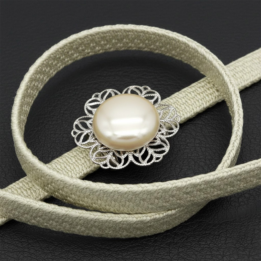 帯留付き三分紐帯締(フラワー/ホワイト_大)【大原商店】