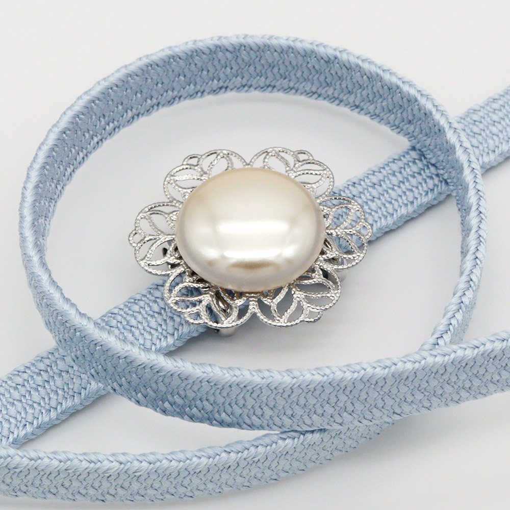 帯留付き三分紐帯締(フラワー/ホワイト_大)【大原商店】
