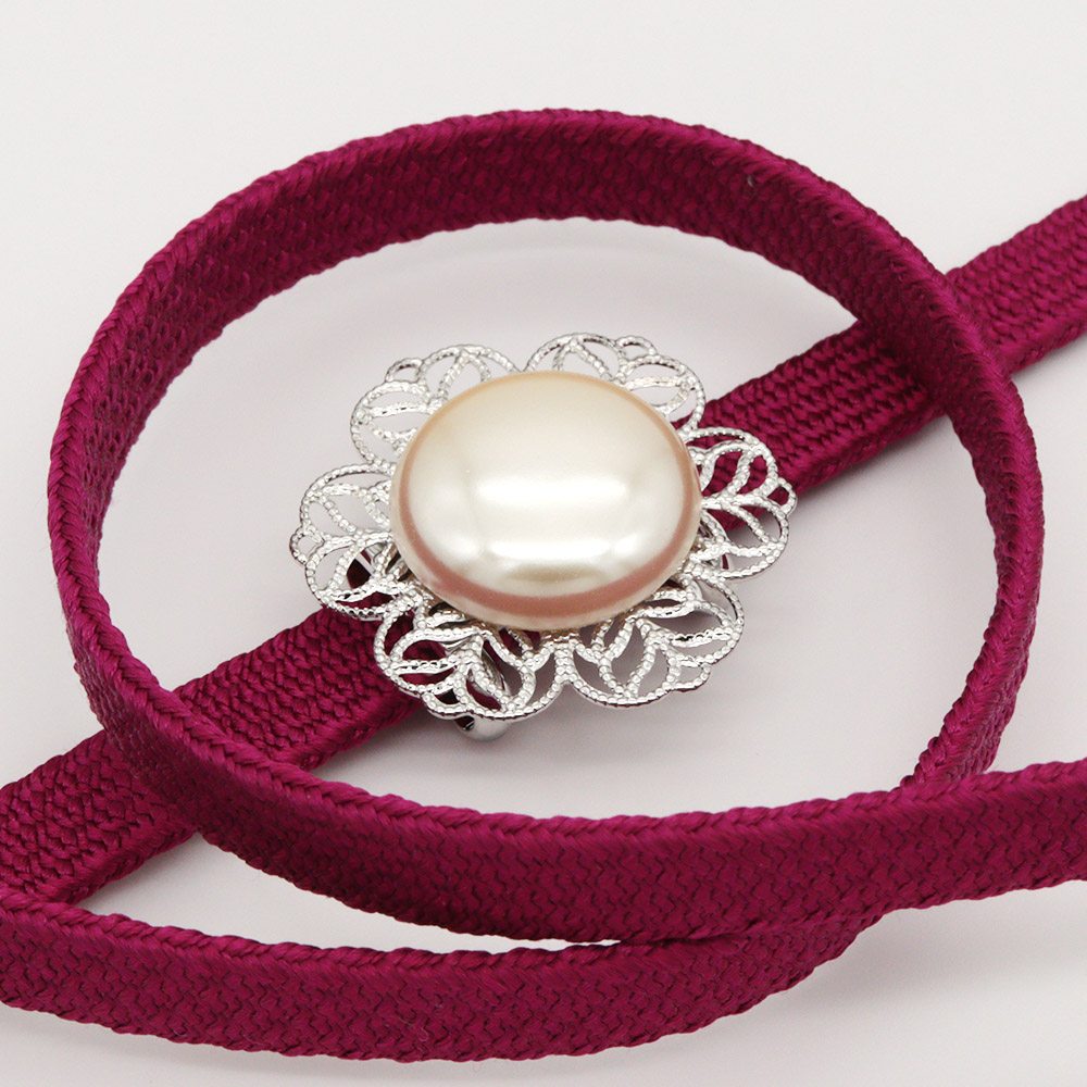 帯留付き三分紐帯締(フラワー/ホワイト_大)【大原商店】