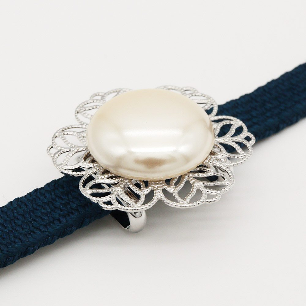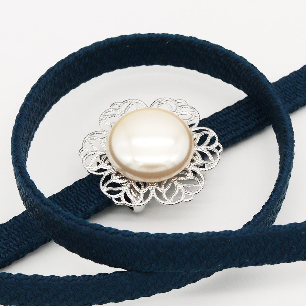 帯留付き三分紐帯締(フラワー/ホワイト_大)【大原商店】