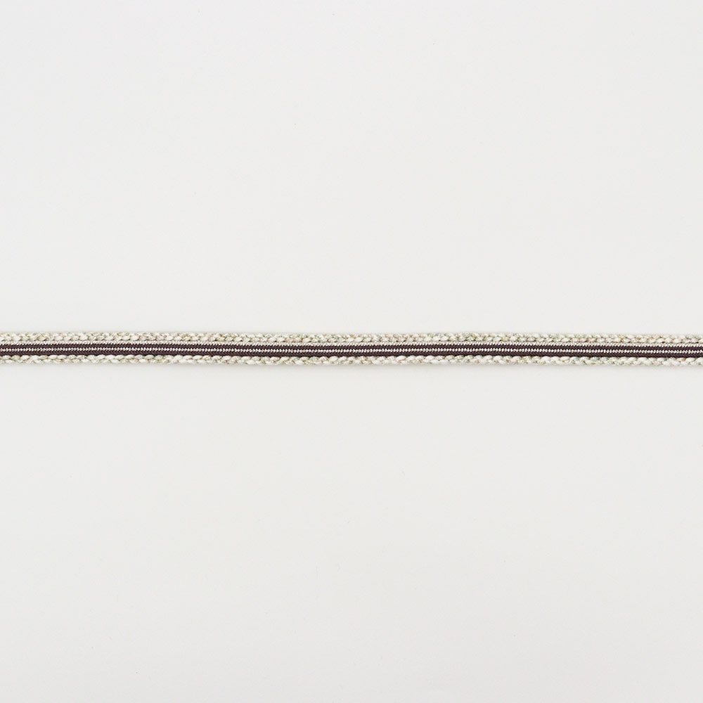 金銀・色々、オーロラカラーの金属糸を両耳に組み込んだ平組みの一本です。