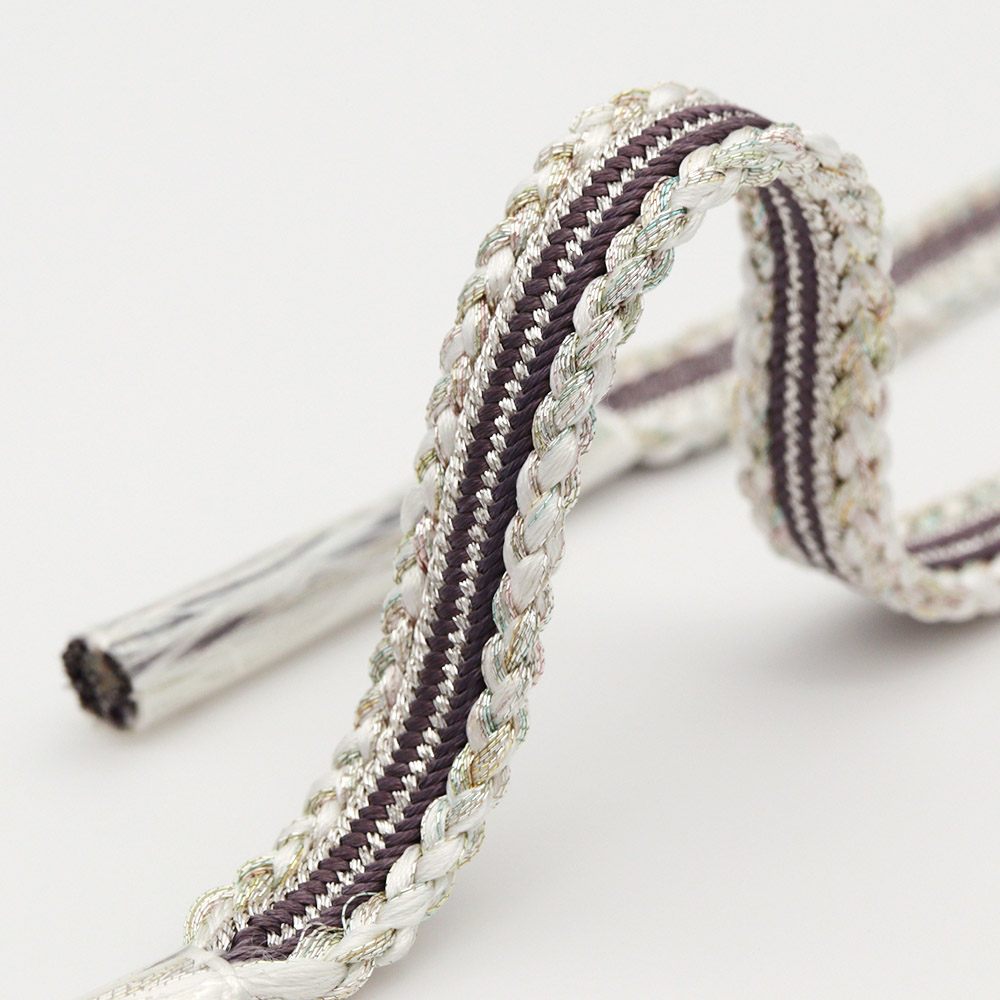 銀糸を絡ませた灰紫色のセンターラインが引き締め役となり、単調になりすぎないデザインに。